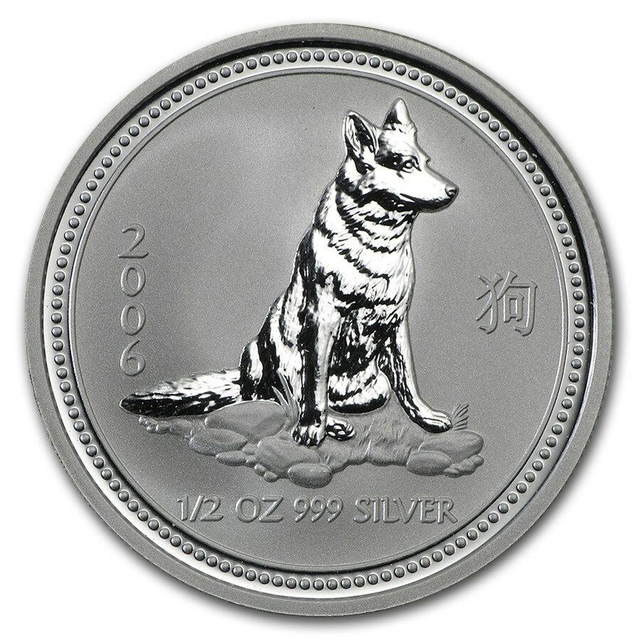 2006 Australie serie 1 Annee lunaire du chien 1/2 oz. 999 Silver Bu Coin