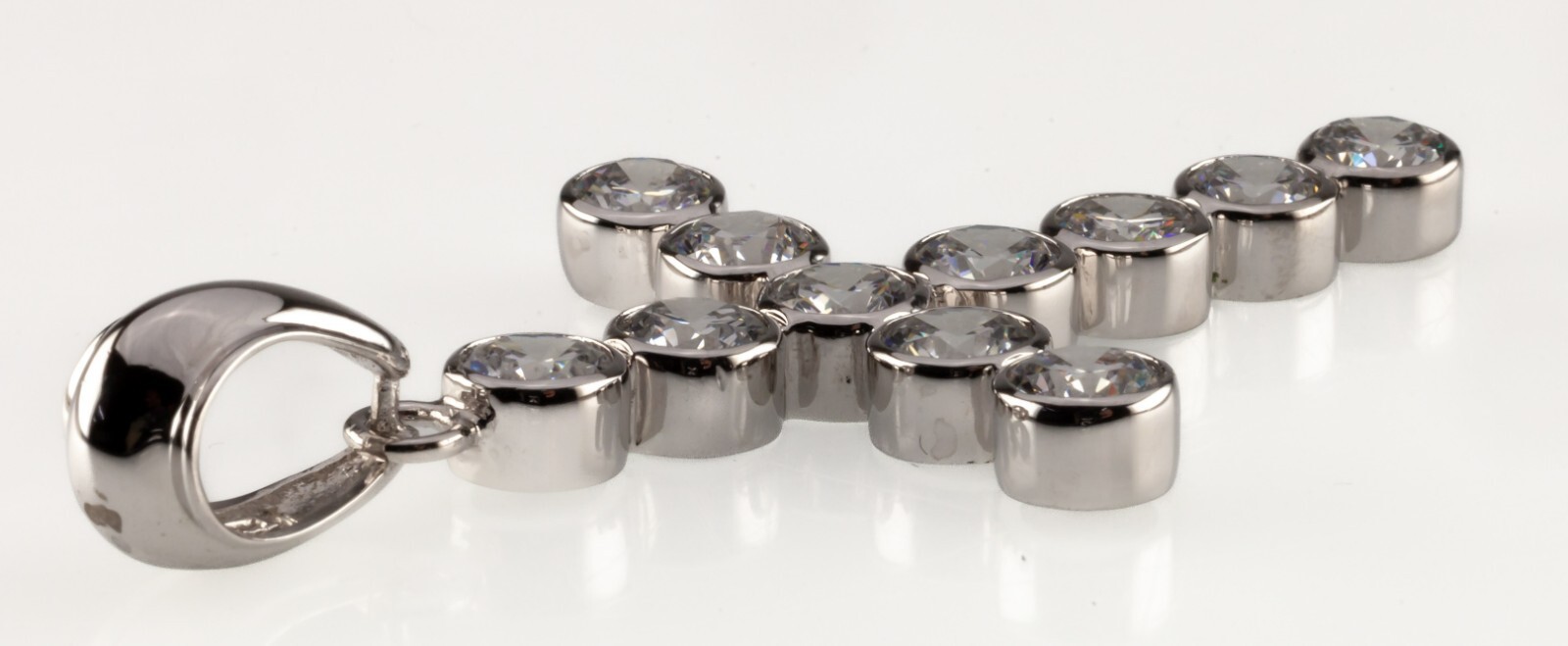 Argent Sterling Pendentif Croix Avec Biseau Ensemble Rond Zircon Cubique Superbe