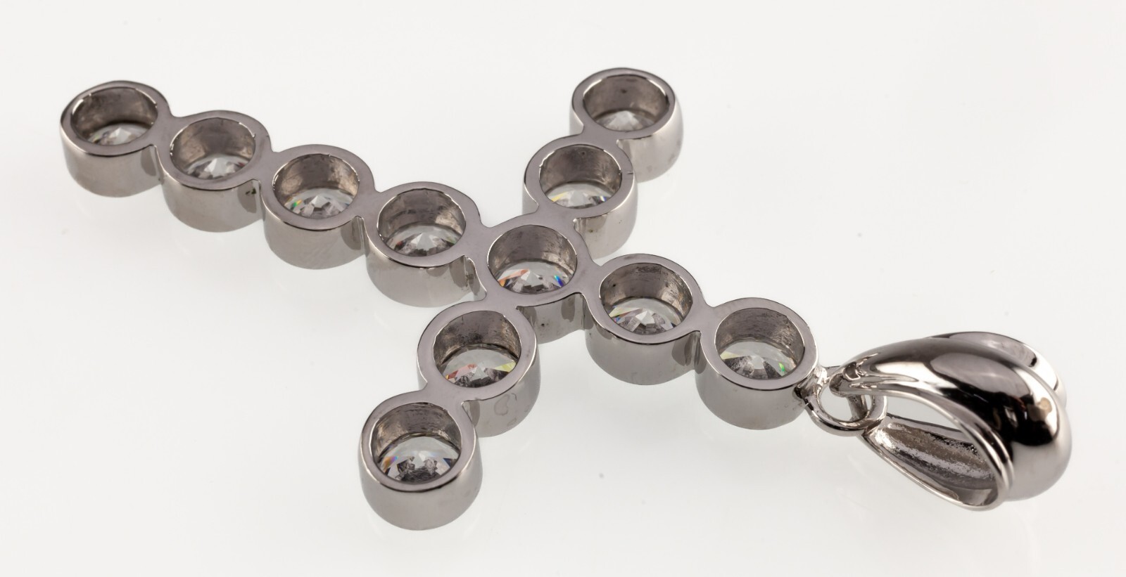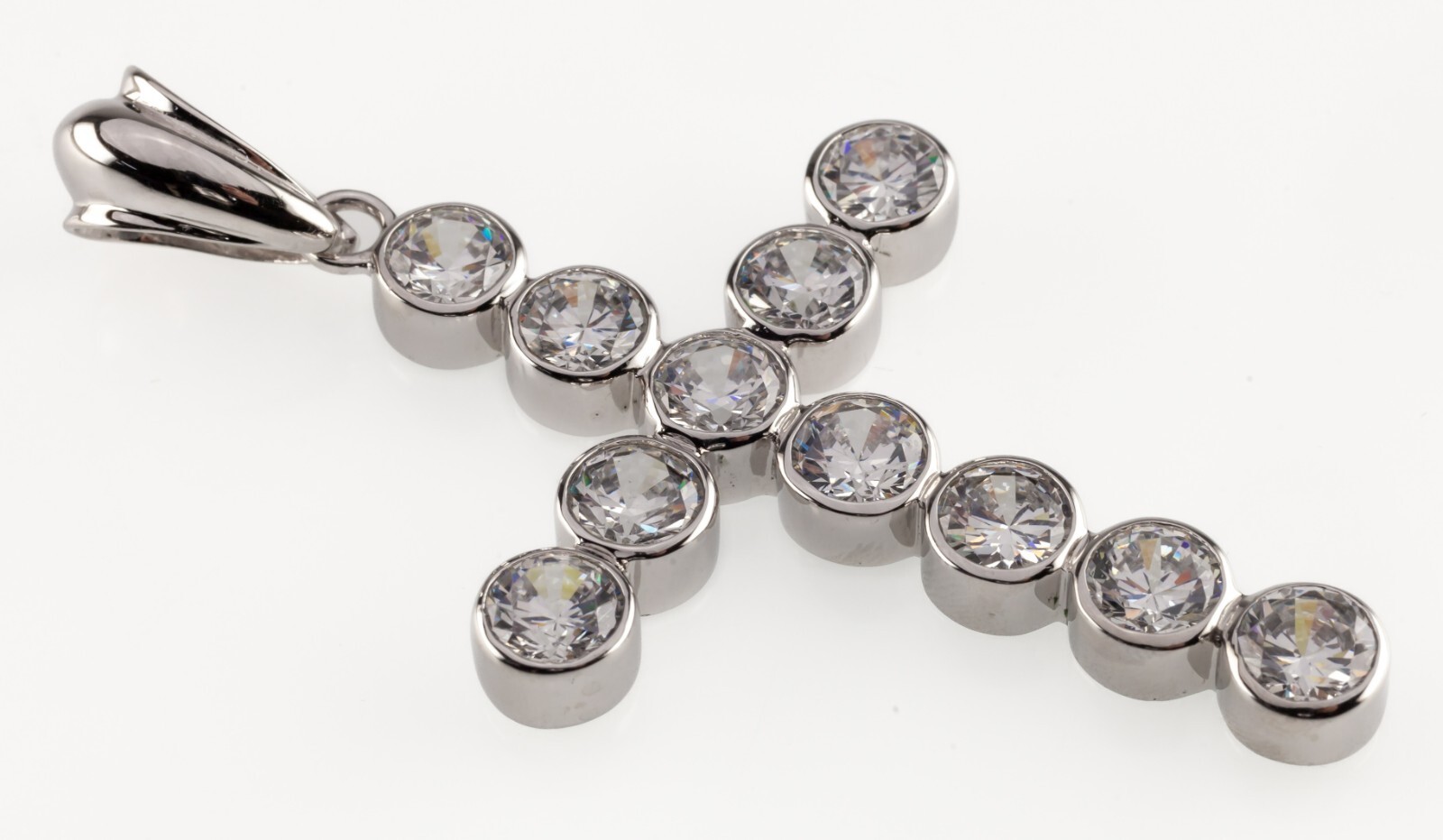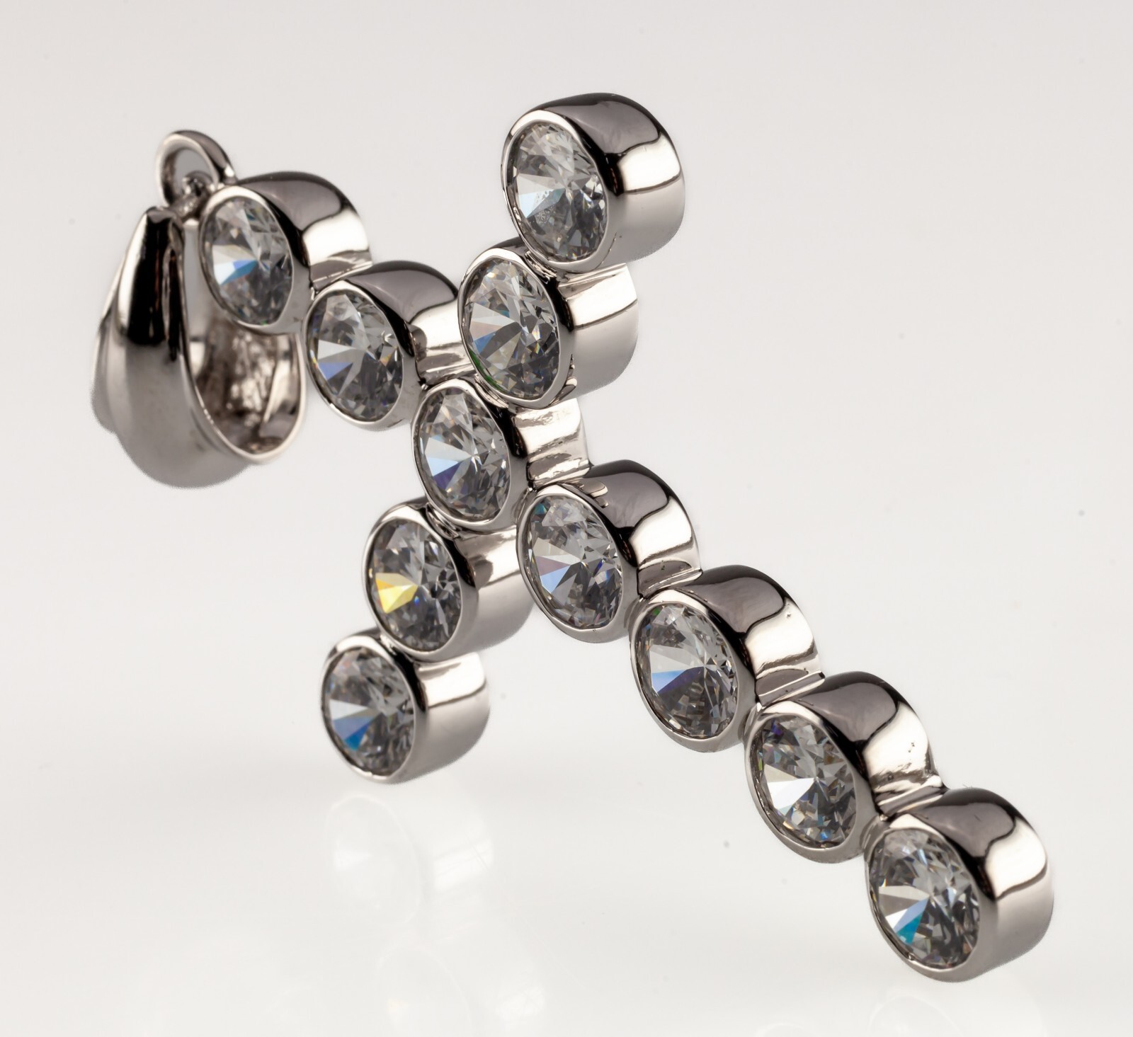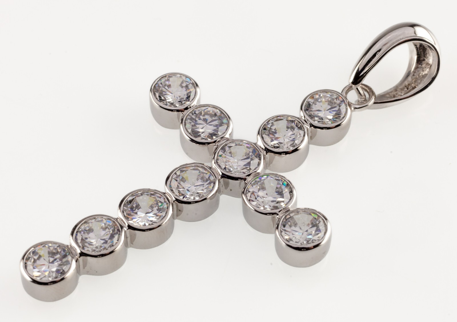 Pendre croise en argent sterling avec lunette set rond CZS magnifique!