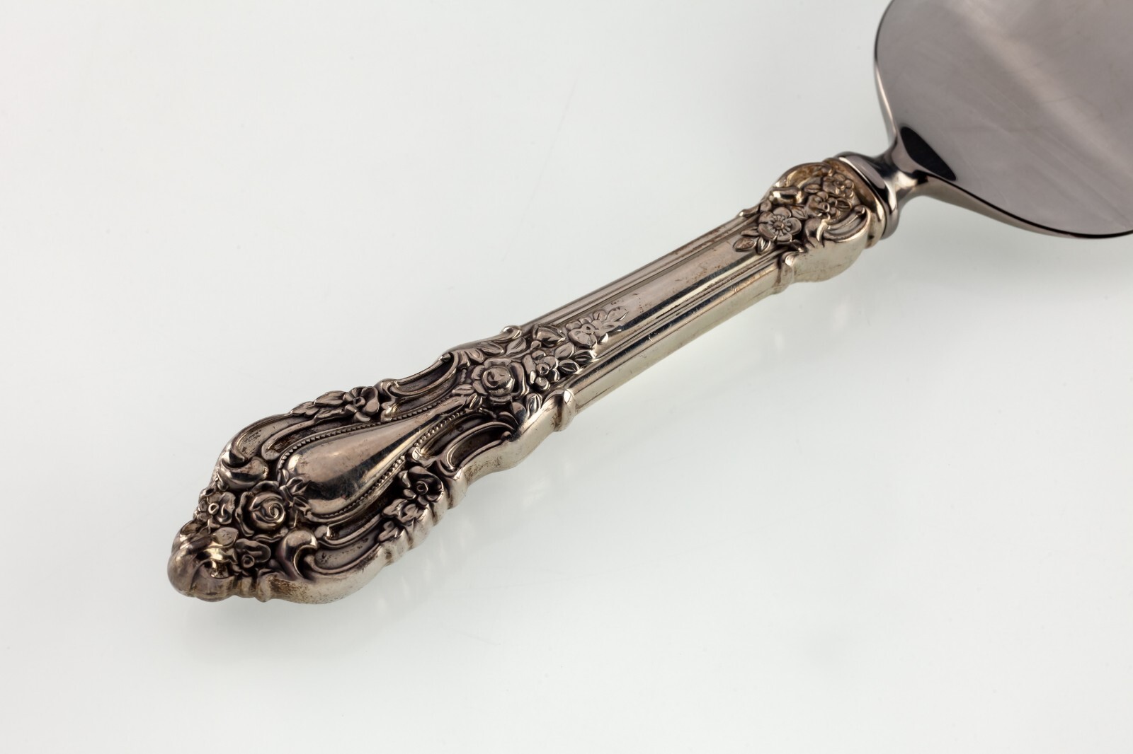 Magnifique serveur de gateaux en argent sterling et en acier inoxydable vintage par Lunt