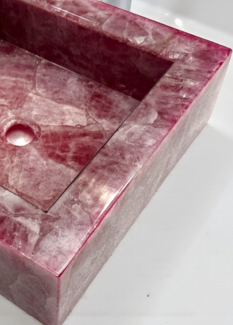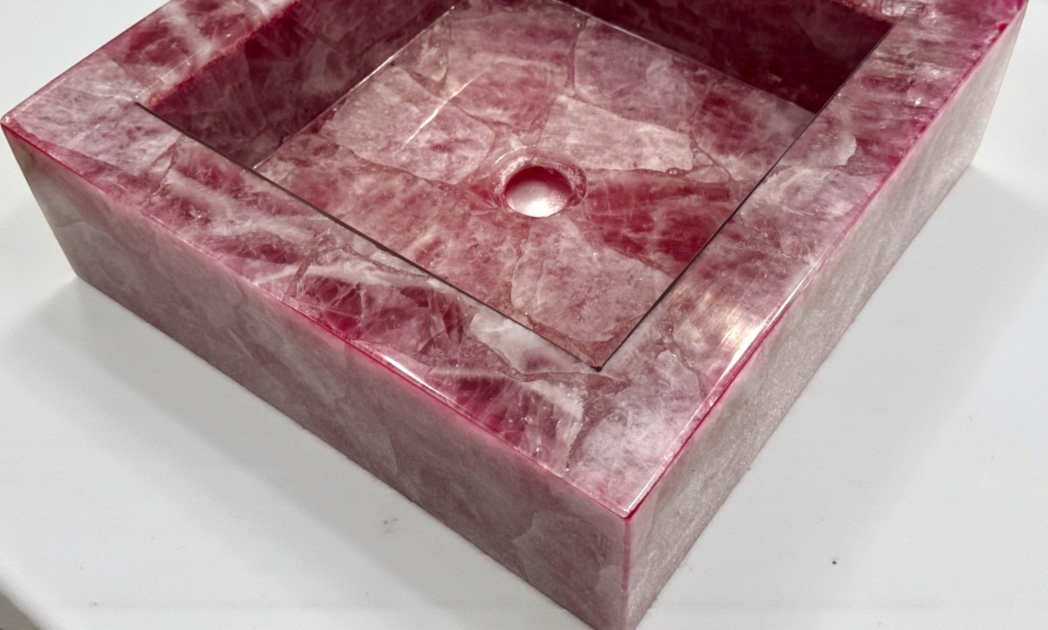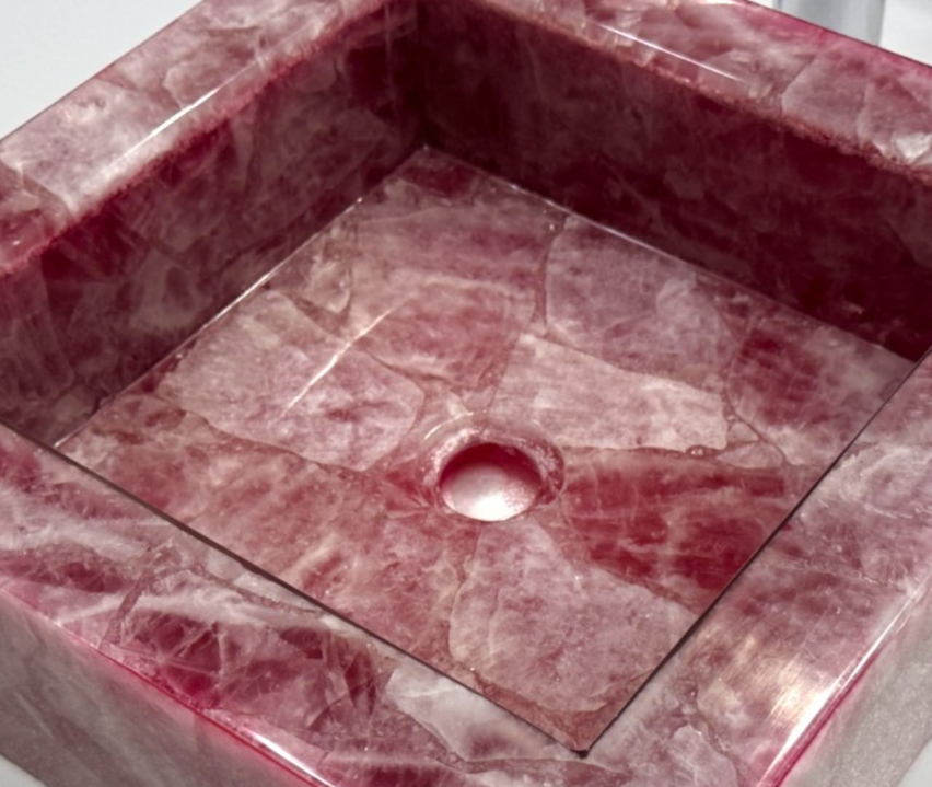 Natural Gemstone Round Shape Wash Basin Rose Quartz Sink for Kitchen & Bathroom