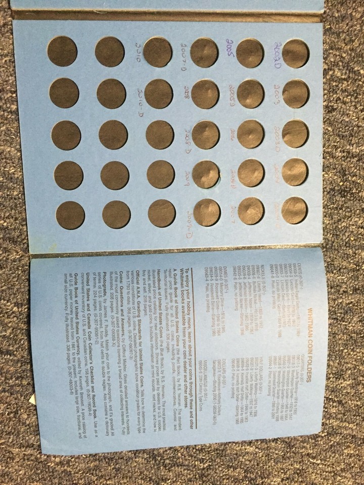 Lincoln cent folder album Starting 1975. Has some marking from removing coins. Some dates are written in. No damage.