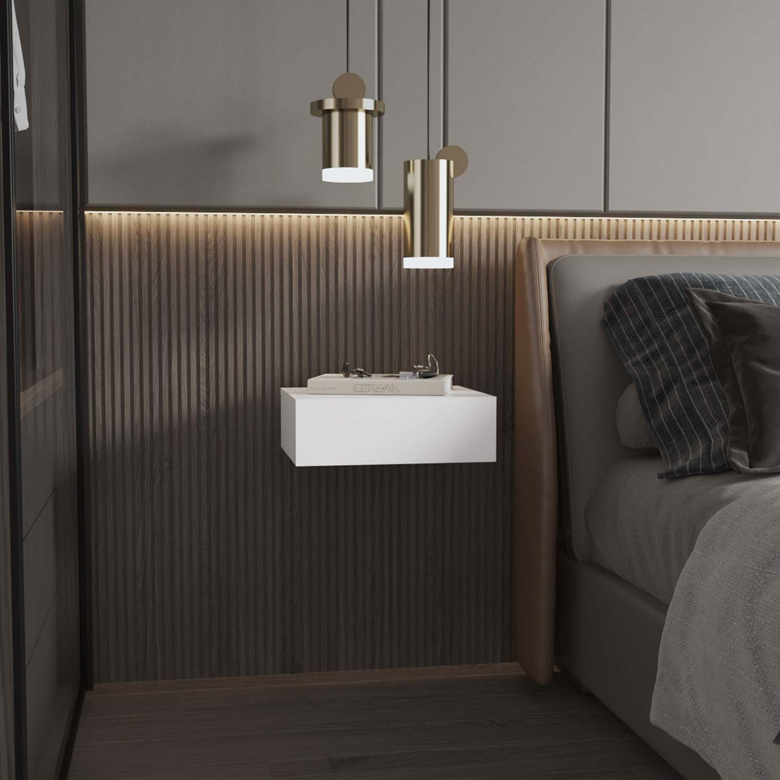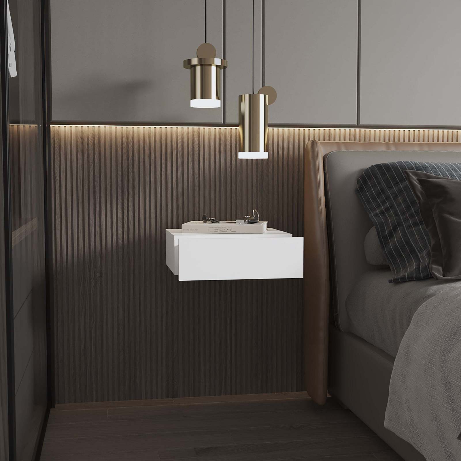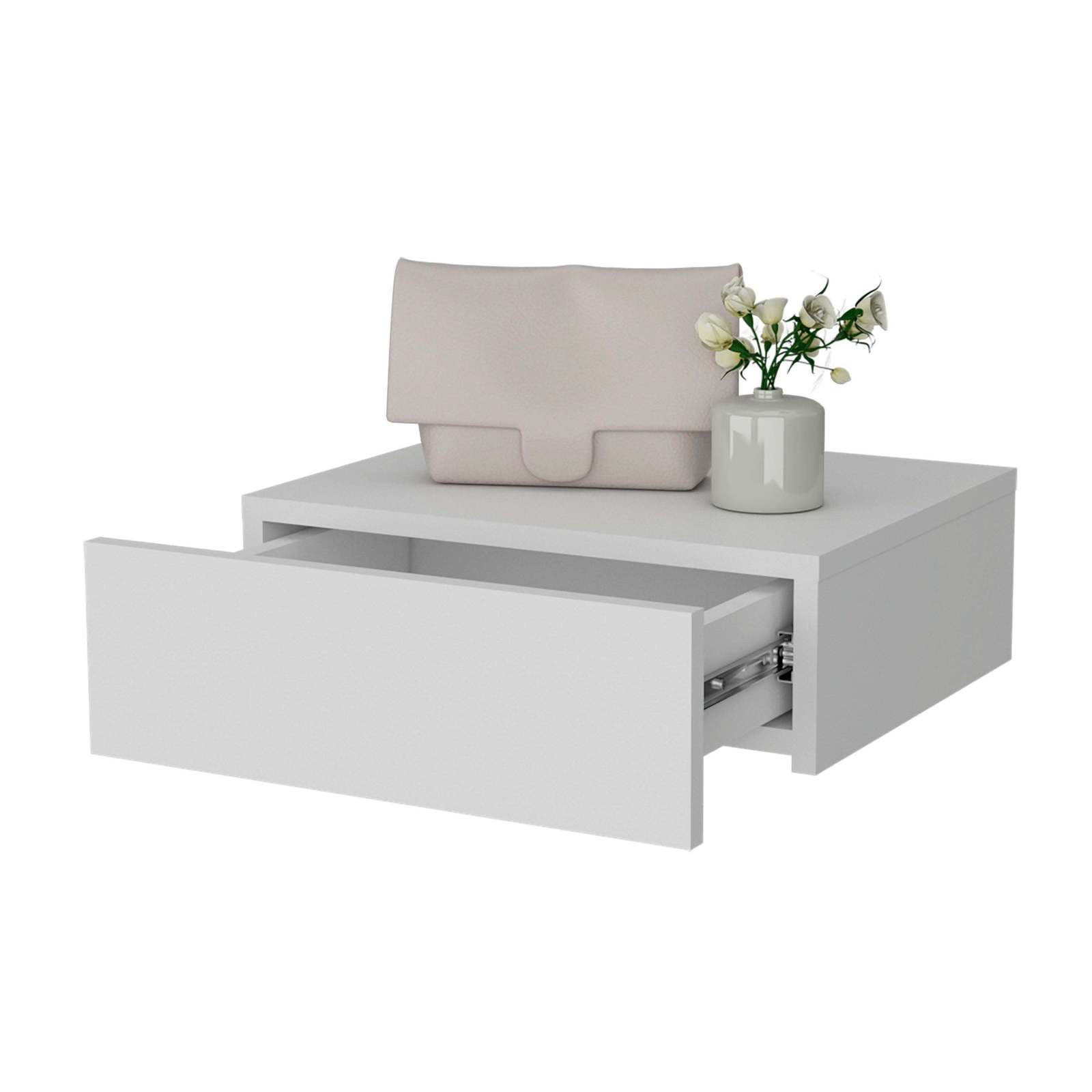 White Wall-Mounted Floating Nightstand - Modern, Space-Saving Design
