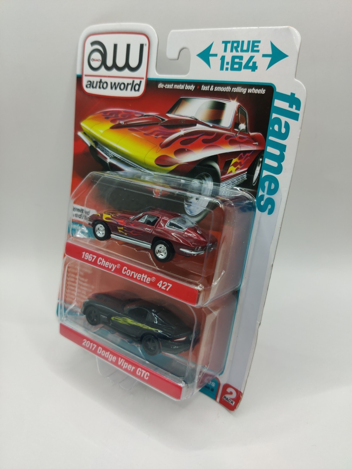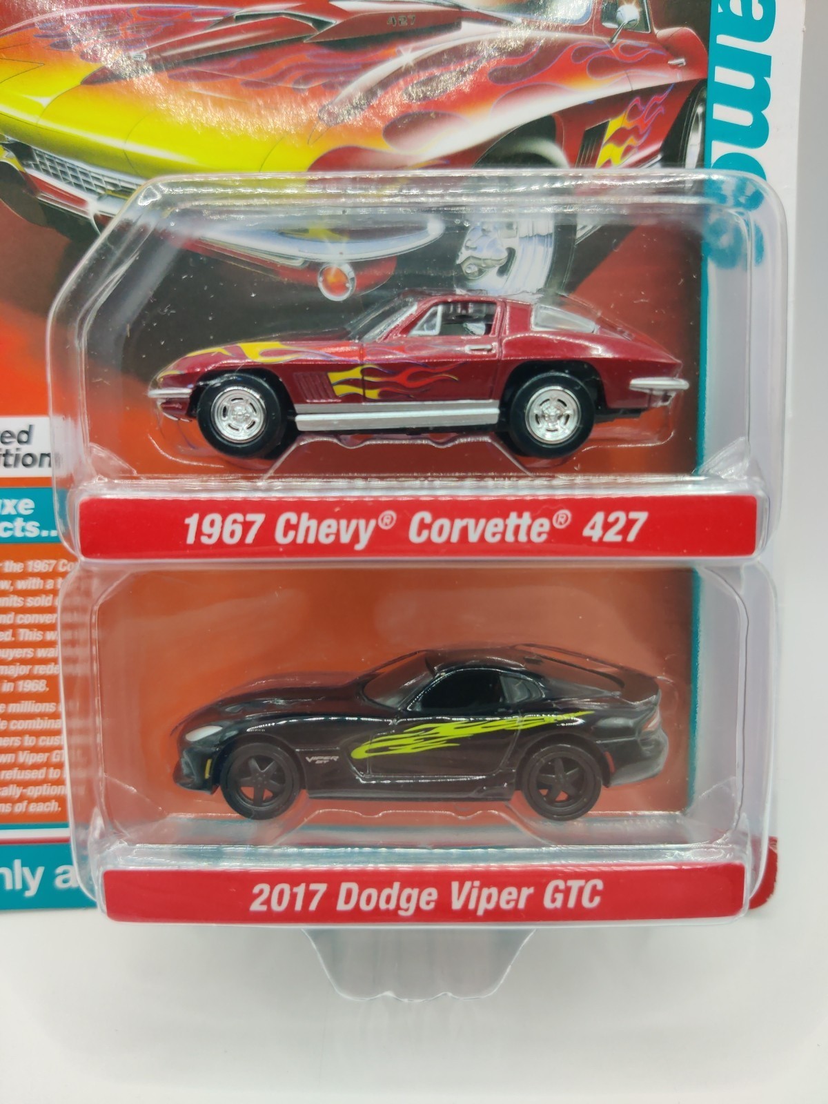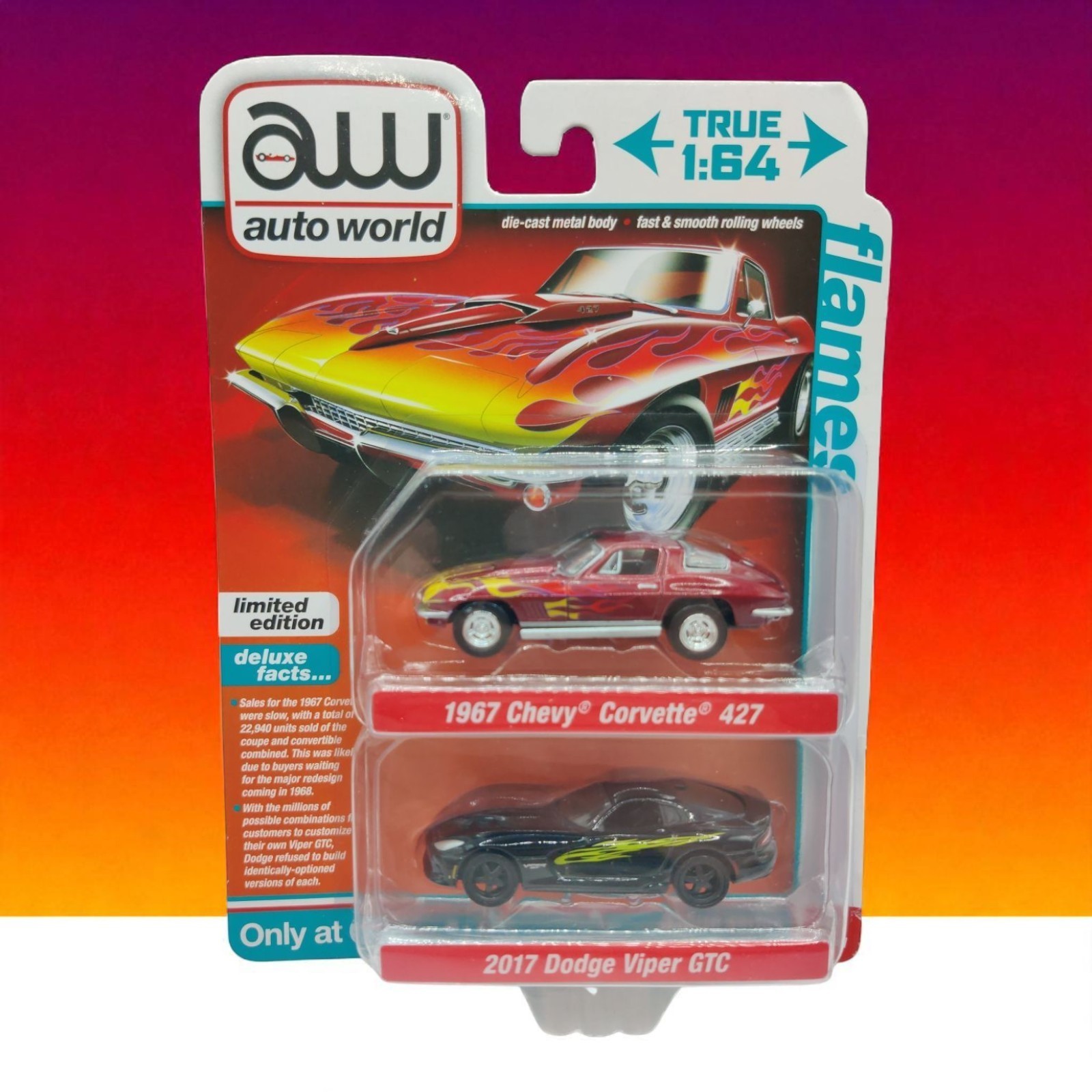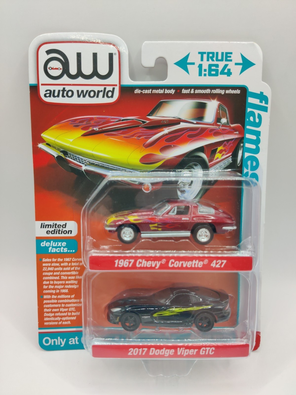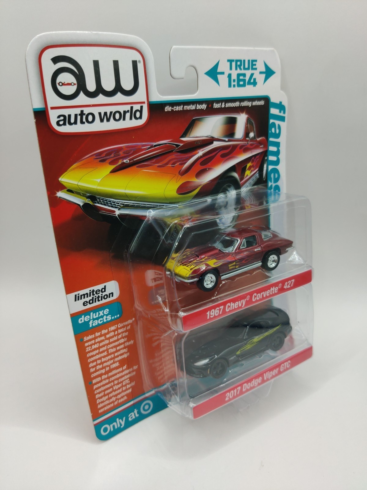 Auto World 2 pk Target Red Flames Chevy Corvette 427 2017 Dodge Viper GTC