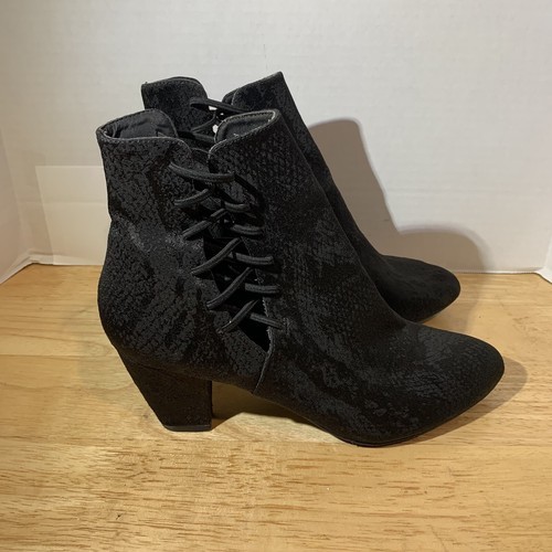 Step out in style with these sleek New York Transit ankle booties. Crafted from soft faux suede and featuring a chic black color, these boots are perfect for any occasion. The lace-up closure provides a snug fit while the 2 1/2 inch block heel offers a comfortable lift.