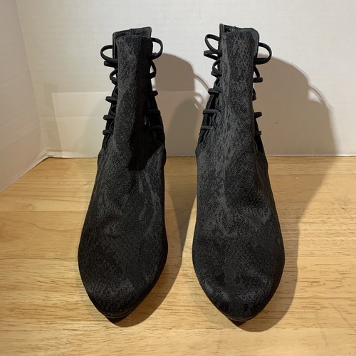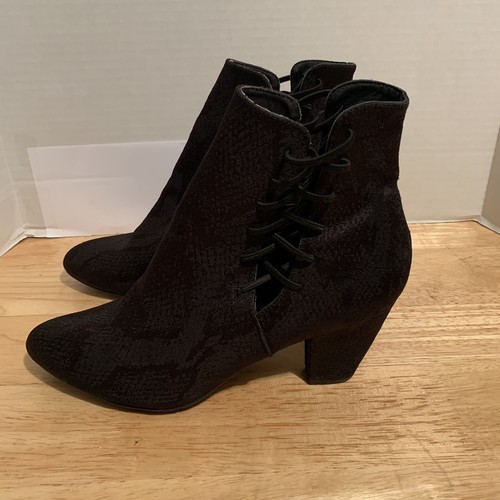 New York transit faux suede ankle bootie lace up both sides.2 1/2 block heel 10