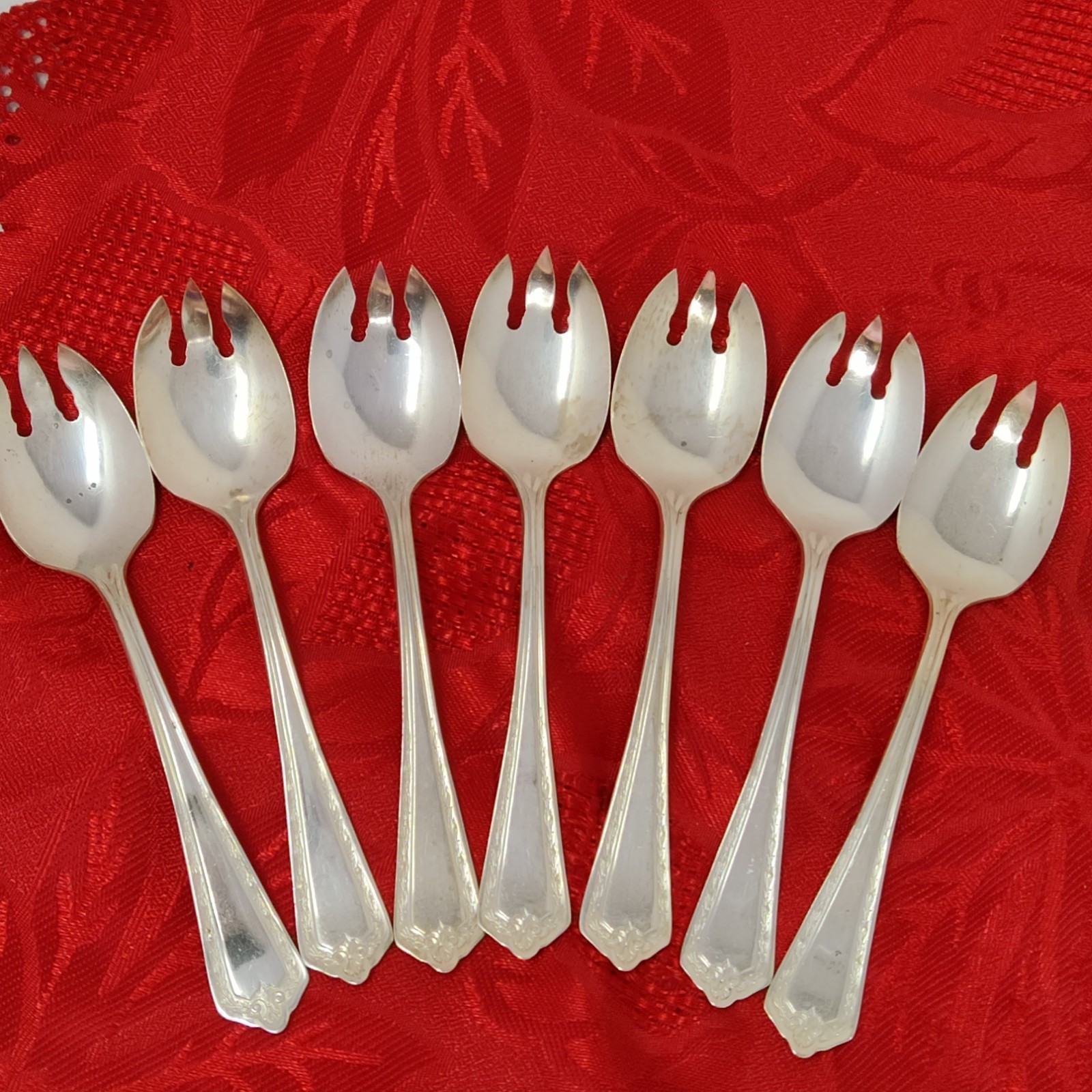 7X HAMPDEN Silverplate International Silver Wm Rogers Ice Cream Fork 5"
