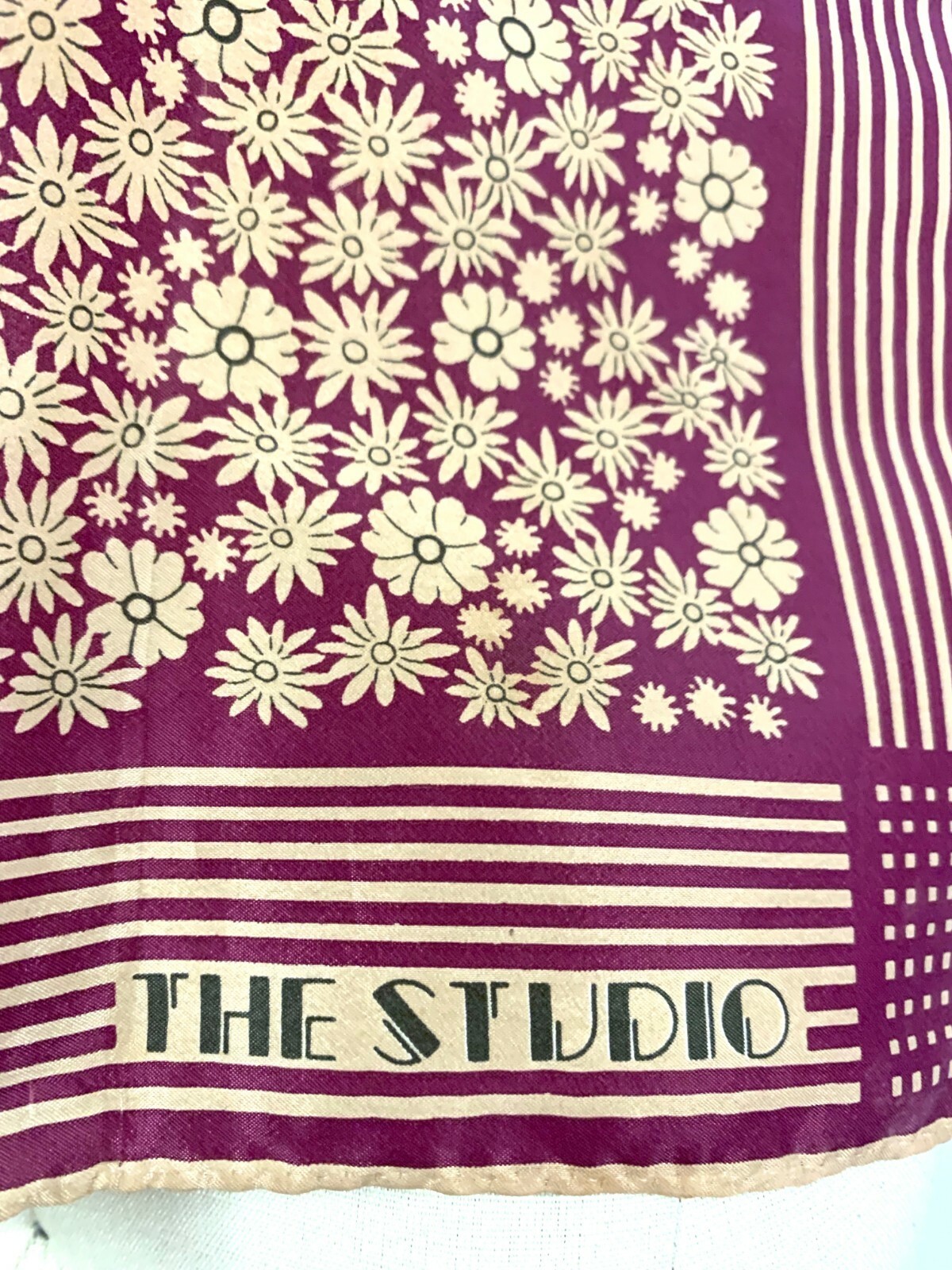 Vintage The Studio for Robinson & Golluber Silk scarf 21" Square Hand rolled