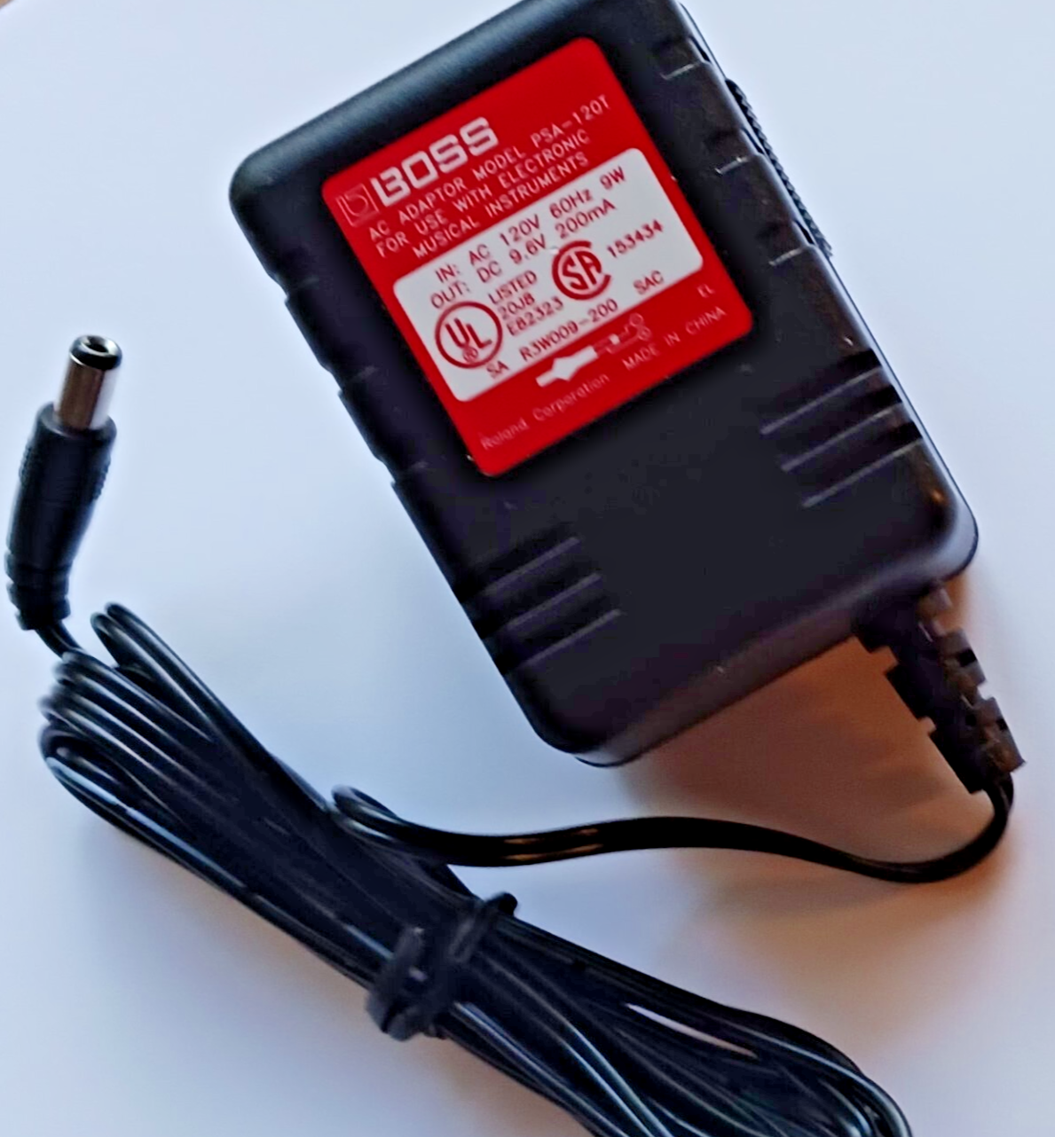 compact BOSS (from Roland) AC adapter / power supply. The model is PSA-120T, for