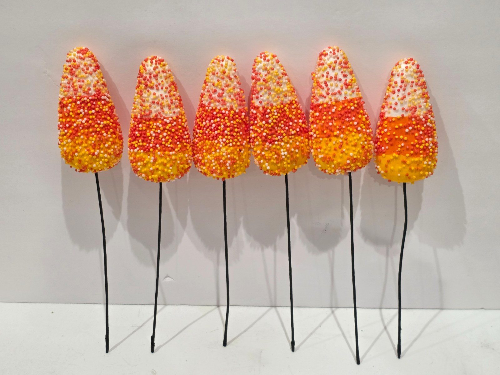 Halloween Styrofoam Candy Corn Picks Set of 6 NEW 11"