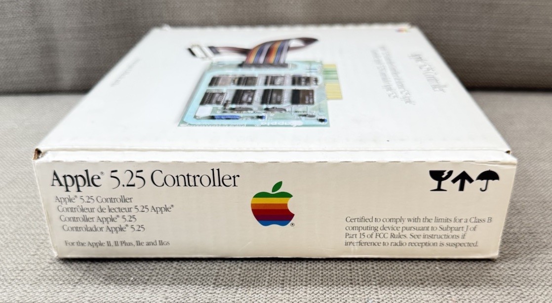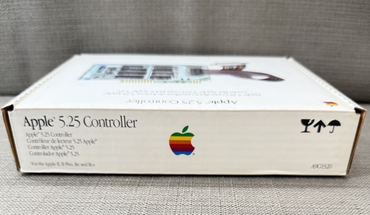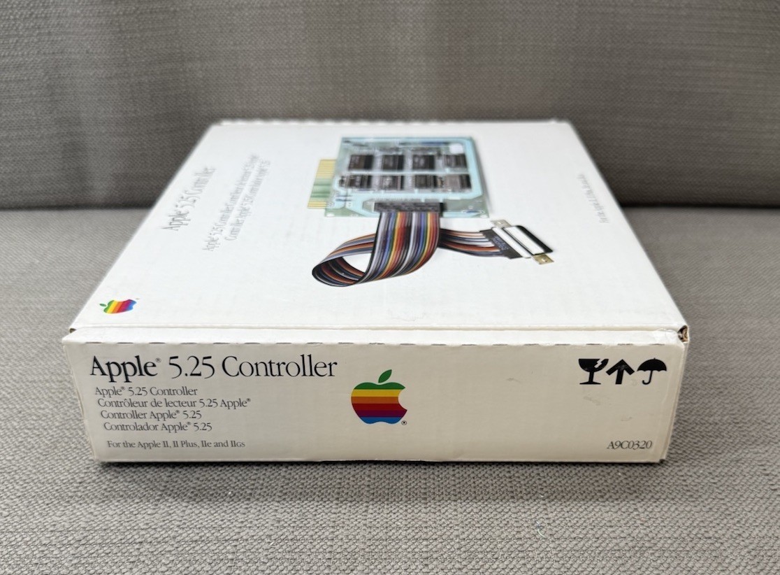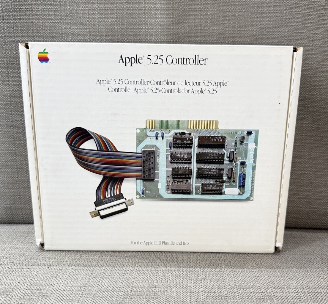 This is an original Apple 5.25? Controller Card box, made for the Apple II, IIe, IIGS, and II+ series computers. Box only ? no card included. A rare find for collectors of vintage Apple computer accessories, perfect for completing or displaying your classic Apple II setup. The box features clean graphics with the rainbow Apple logo and controller image on the cover.