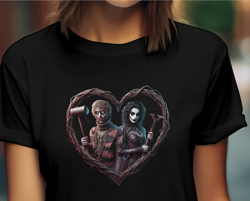 "Chilling Horror-Inspired Heart Art with Unique Creepy Characters" T-Shirt