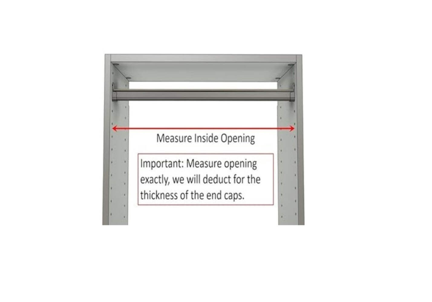 Elevate your wardrobe organization with the TAG Hardware Premium Custom Cut 1 5/16 Inch diameter Round Wardrobe Closet Rod with Protective Insert Plastic Cap crafted for durability and style, this heavy-duty rod is the perfect blend of functionality and sleek design. Ideal for closets, wardrobes, and even boutique displays, it supports your clothes while enhancing any space. Key Features: Efficient Garment Storage ? Ideal for hanging clothes in closets, wardrobes, or retail spaces. Elegant Premium Finishes ? Adds a touch of sophistication to any room. Heavy-Duty Construction ? 14-Gauge thickness ensures lasting durability. Streamlined Appearance ? Round profile with a modern finish, perfect for any decor. Smooth Hanger GlidingHardened plastic cap ensures quiet, effortless movement of hangers. End Caps with Patented Two-Piece Design ? Fully encloses and protects the ends of closet rods, ensuring no sharp or exposed edges. Recommended Uses: Closet Organization: Perfect for residential closets, efficiently organizing and hanging clothing Wardrobe Upgrade: Instantly enhances the style and functionality of wardrobes Bedroom Storage: Keep daily clothes within easy reach Retail Displays: Showcase clothing in retail or boutique settings Laundry Room: Use for drying clothes or hanging freshly ironed garments Entryway/Coat Hanging: Hang coats and accessories in entryways or mudrooms Office Spaces: Convenient for hanging uniforms, work attire, or merchandise Specifications: Material: High-Grade anodized aluminum with premium finish Finish: Matte Gold Rod Diameter: 1-5/16" Rod Thickness: 14-Gauge, 0.08" (2 mm) End Caps: One open and One closed end supports with pins Mounting: Installation screws are not included to ensure compatibility with various surfaces. Standard Phillips flat head #8 screws are recommended Support Recommendations: For lengths over 24", we recommend adding a central support for extra stability Why Choose: Sleek Design: Offers a refined appearance for any closet or wardrobe Heavy-Duty Strength: Supports all your clothing needs with ease Complete Package: Includes everything you need for installation in one convenient package Industry Standard Weight Capacity: The industry standard weight capacity for 8-foot-long round closet rods varies depending on the material and diameter: ? Steel Closet Rods (1-5/16" Diameter, Heavy-Duty): Typically support 150?250 lbs when properly installed with center supports. High-gauge steel rods can handle even more weight. ? Aluminum Closet Rods (1-5/16" Diameter, Heavy-Duty): Usually support 75?150 lbs, depending on the wall thickness and support brackets. For proper installation, it's recommended to use sturdy mounting brackets every 32 to 48 inches for steel rods and every 24 to 36 inches for aluminum rods. If extra support is needed, center support brackets should be added.