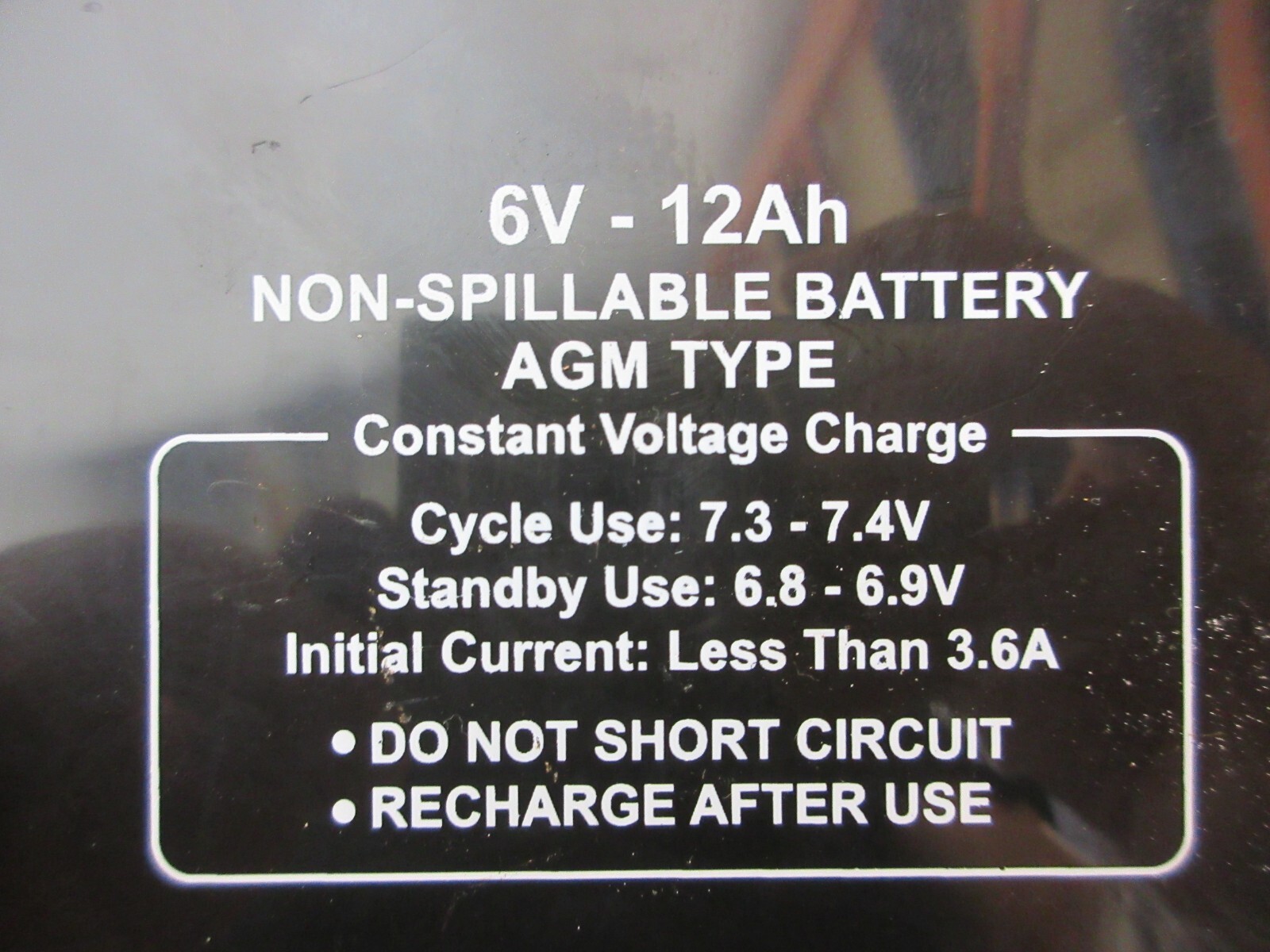 1996 MITSUBISHI CX-20 EDM 6V-12AH NON SPILLABLE BATTERY AG
