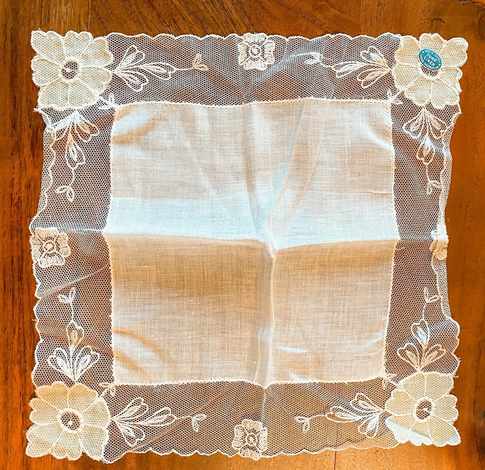Vintage Linen & Net Embroidered Lace Bridal Hankie Handkerchief NWT