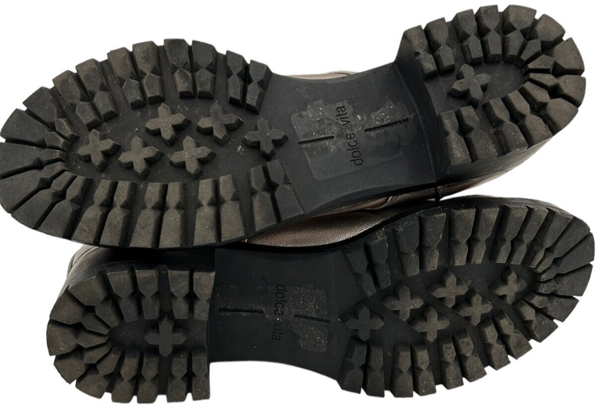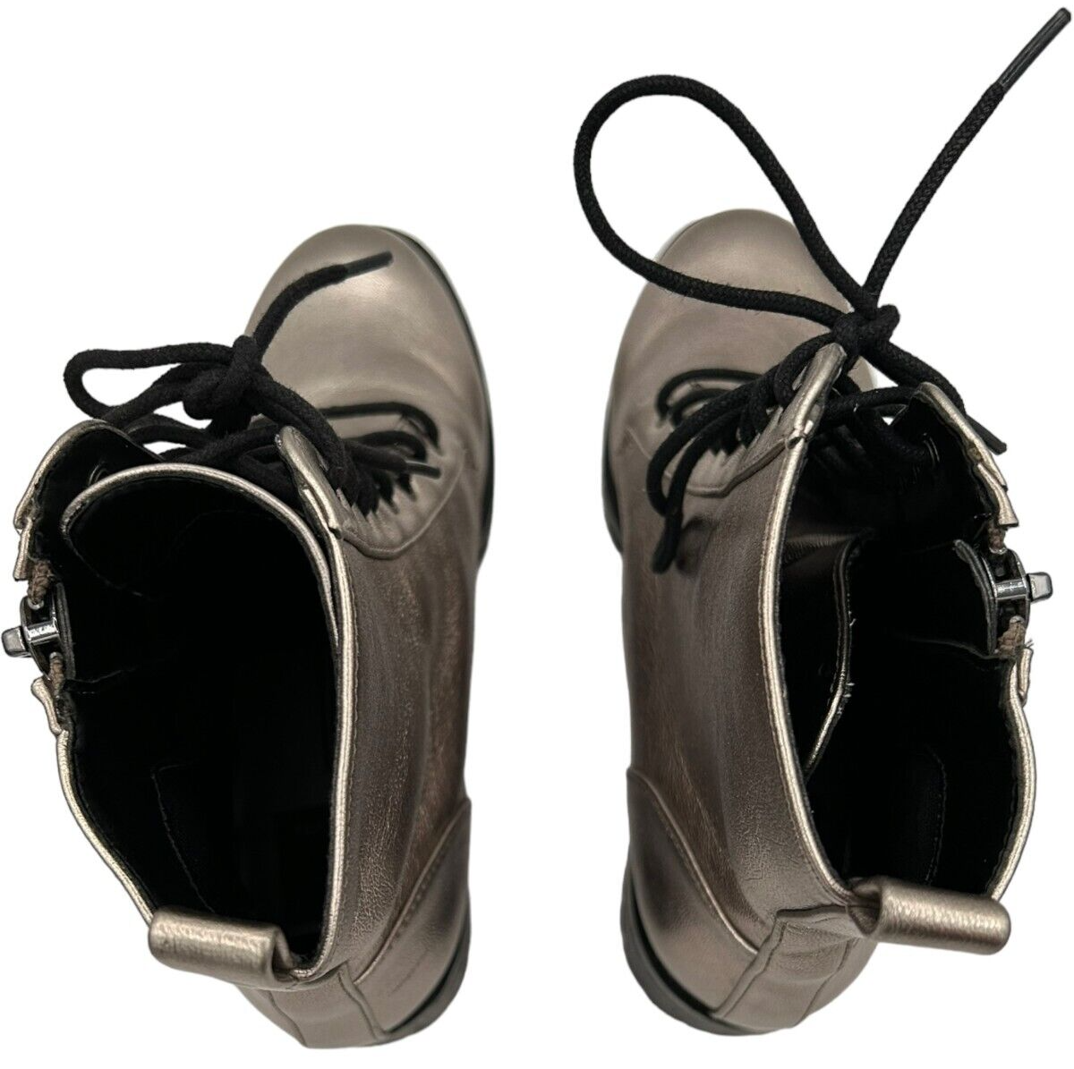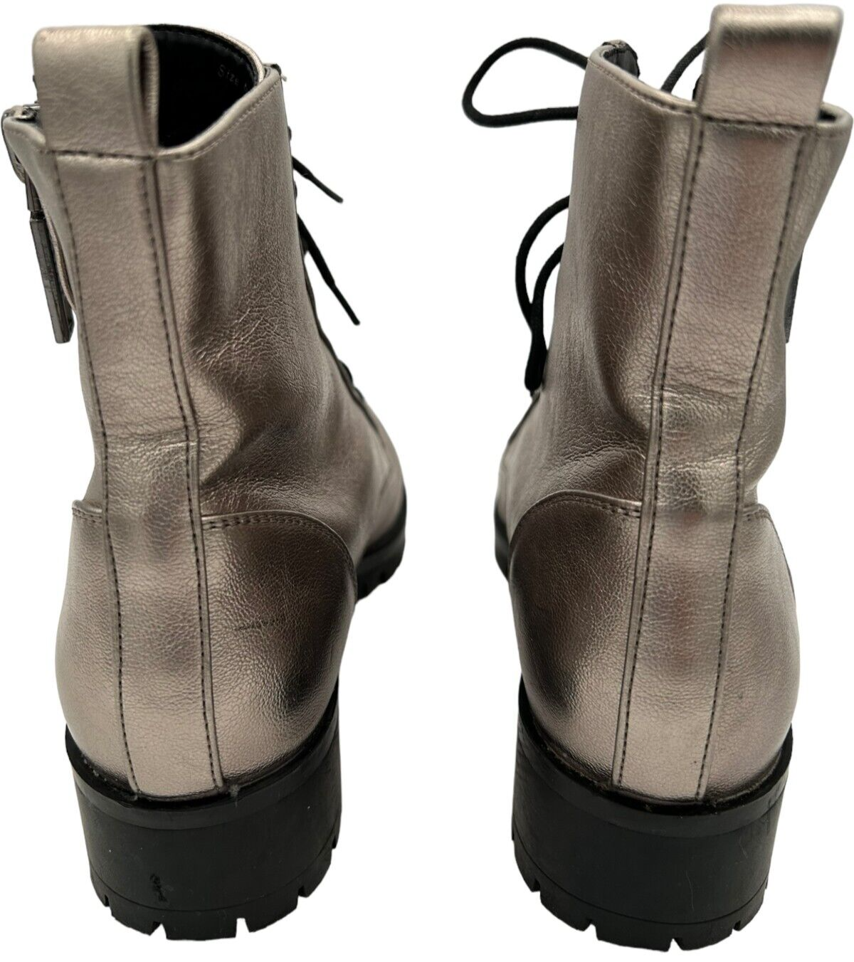 Dolce Vita Palmer Women's Metallic Pewter Leather Combat Booties size 6.5 lace-up closure with side zipper