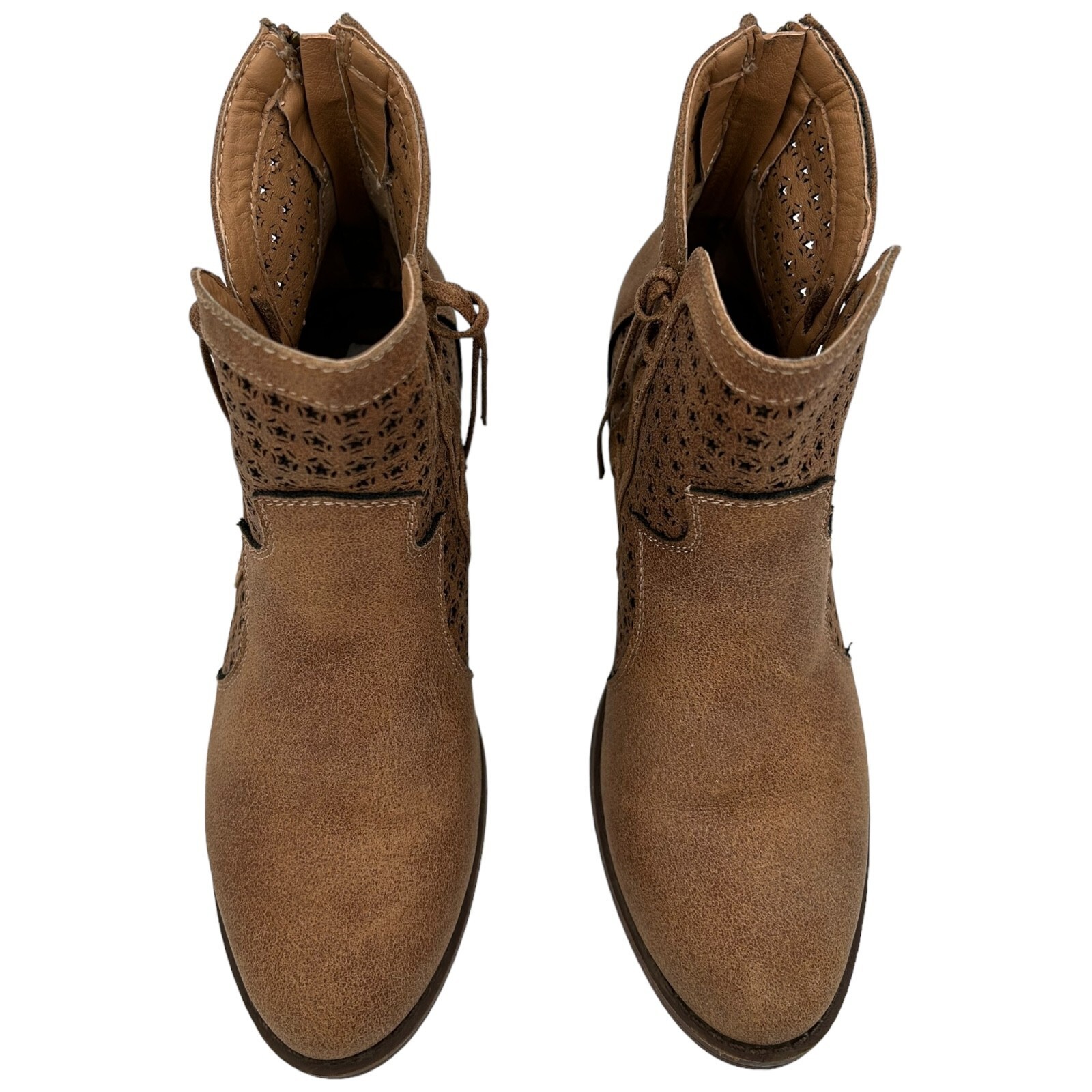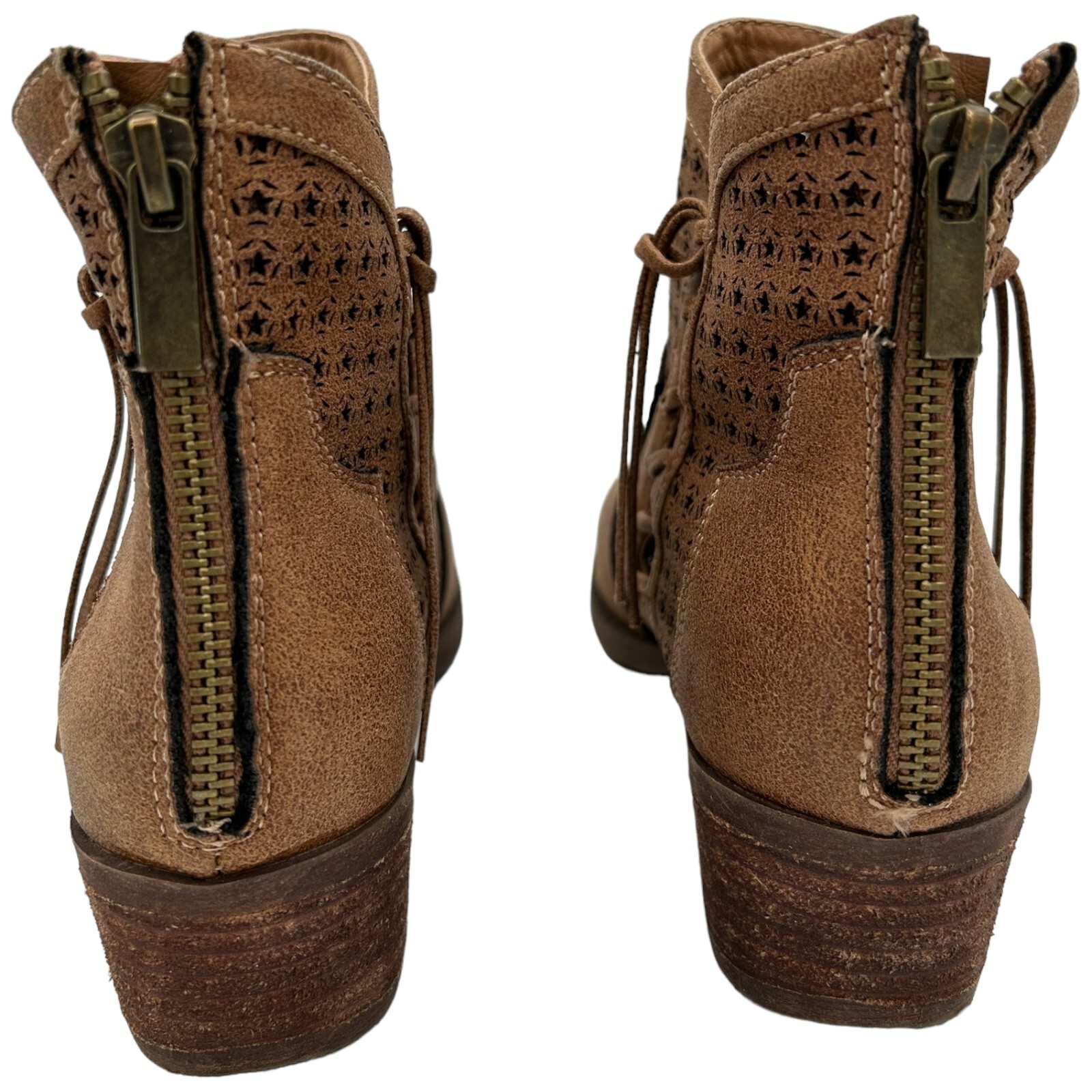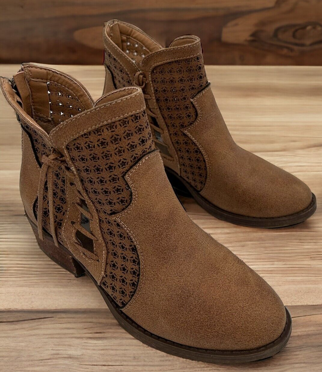 Very G Mata Women's Camel Booties Laser Cut Stacked Heel VGLB0003 size 6