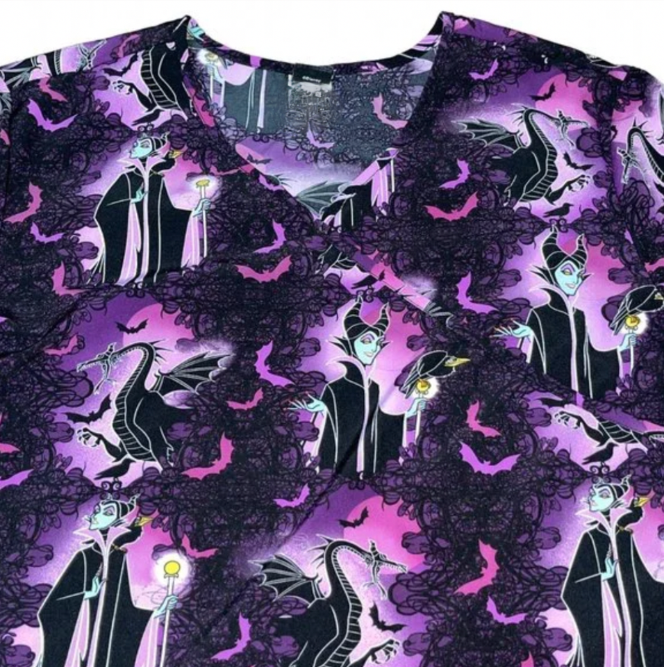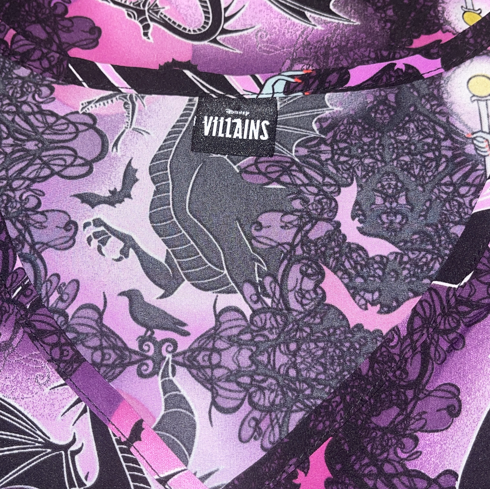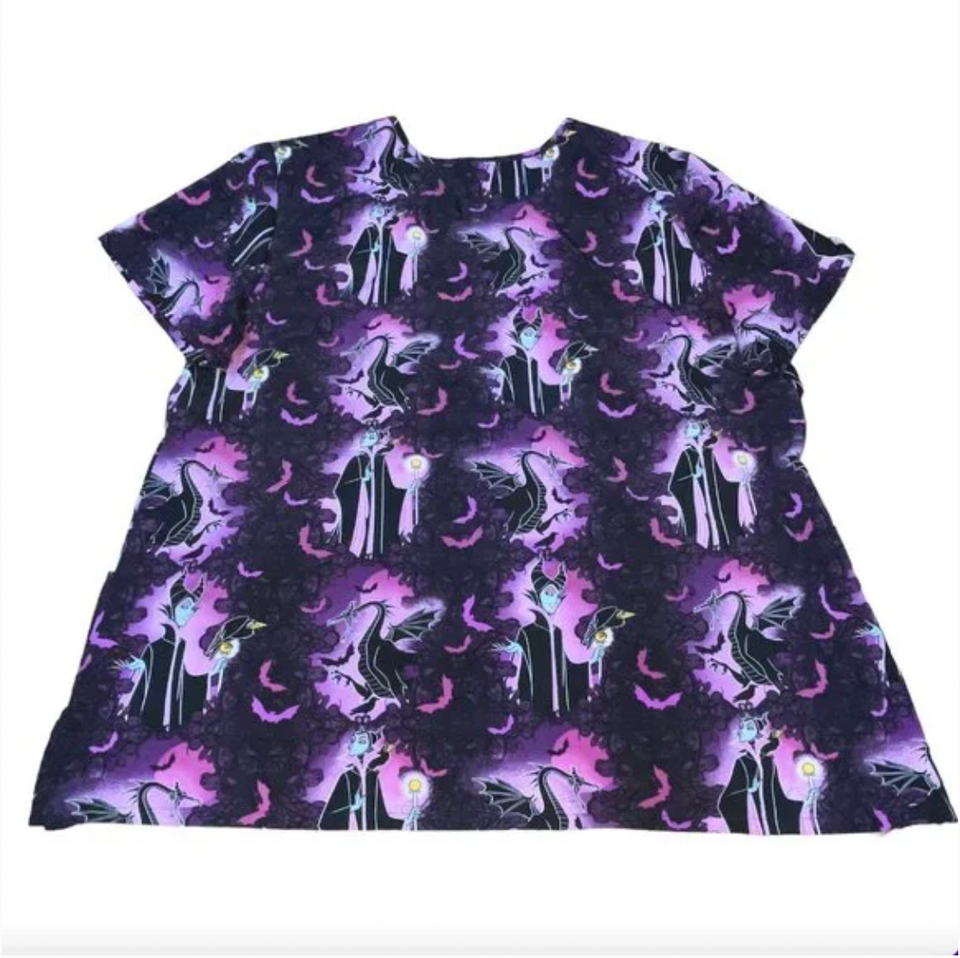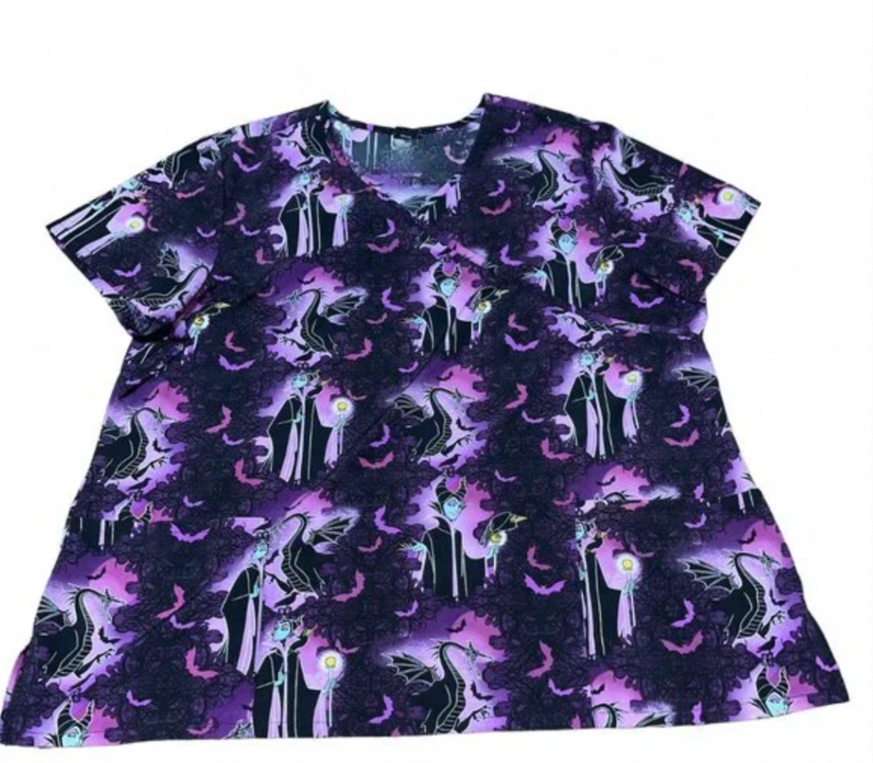 DISNEY VILLIANS Womens Plus 2XL Snow White Maleficent Black Purple Scrub Shirt