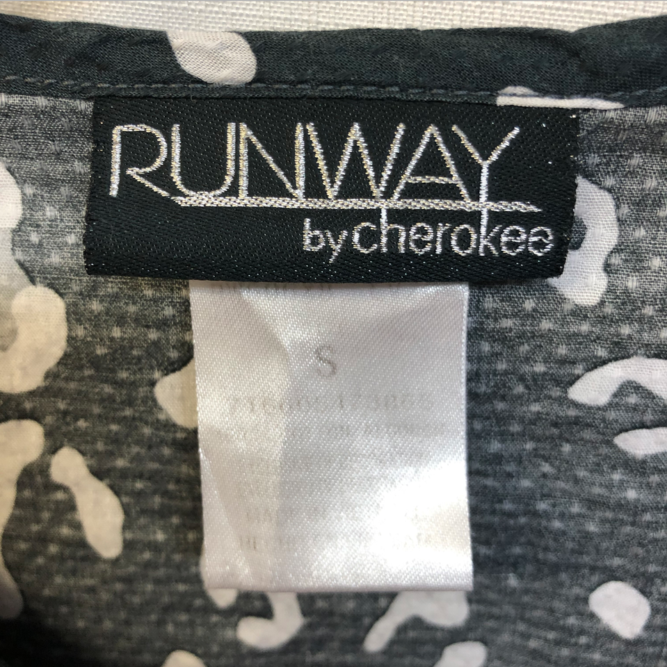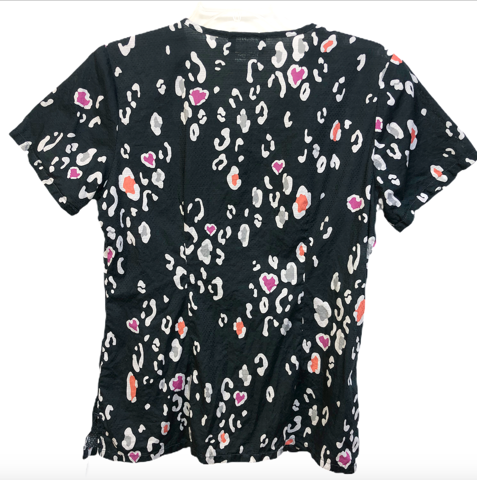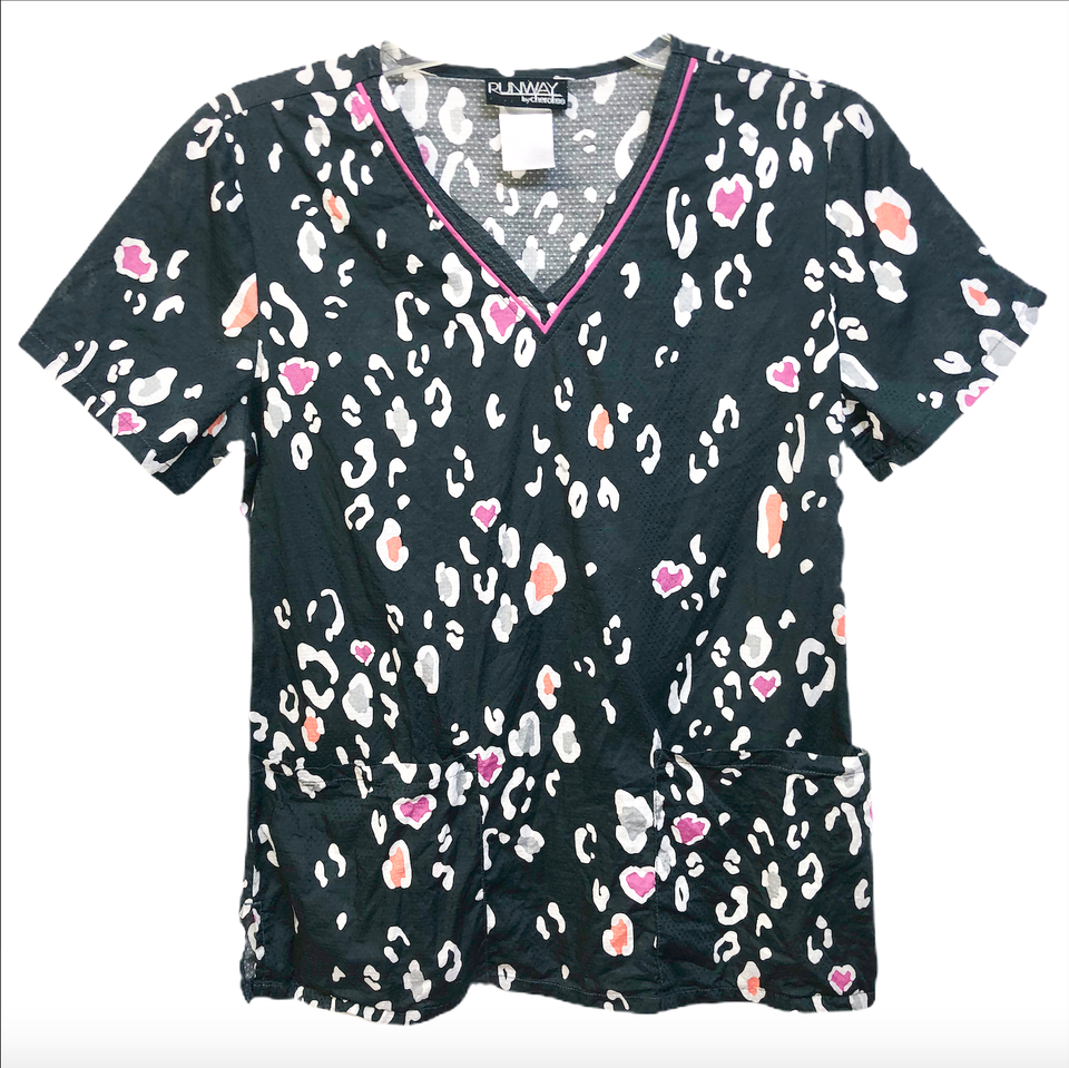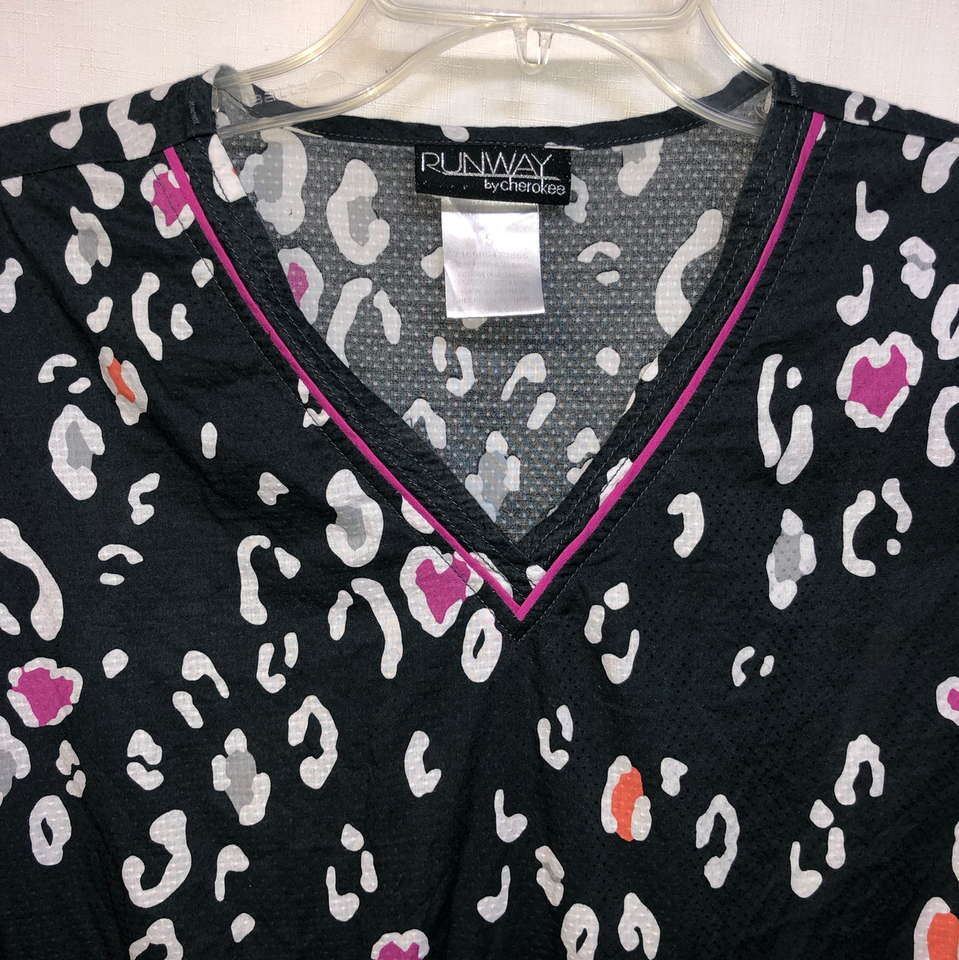 Cherokee Runway Scrub Shirt Small Gray Pink White Cheetah Animal Print Nurse
