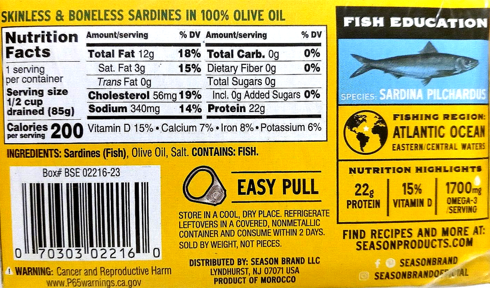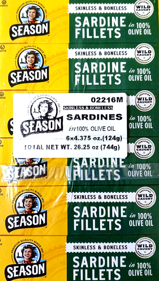 SEASON Sardine Fillets in Olive Oil WILD CAUGHT 4.375oz x 6 |