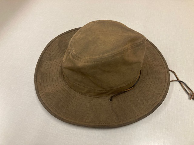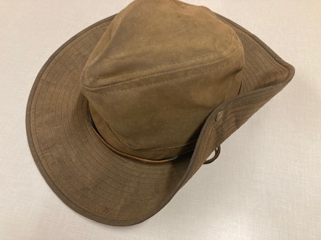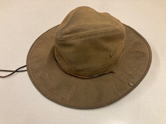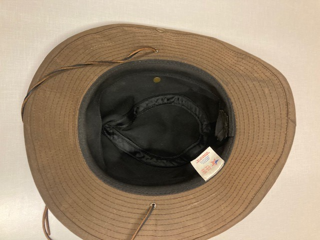 DORFMAN PACIFIC DPC Brown Oilcloth COTTON WIDE-BRIM HAT Hike Sun Cap Sz M USA Very good. Light signs of use. Please refer to images.