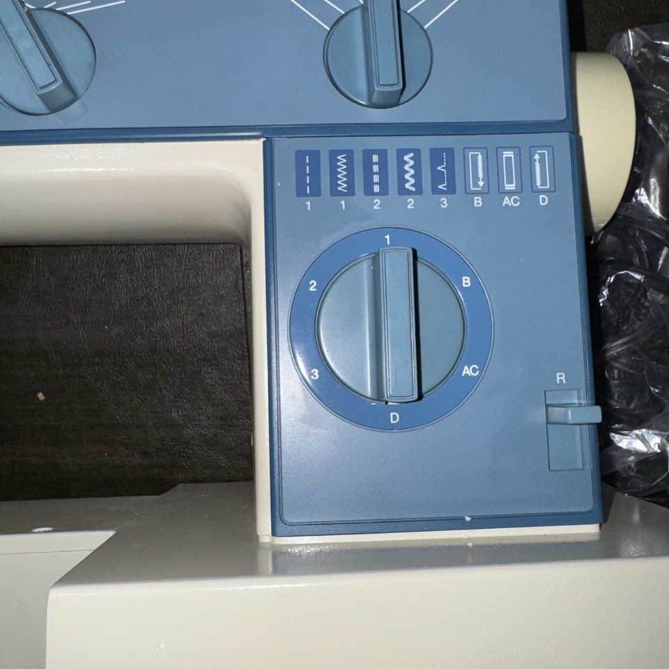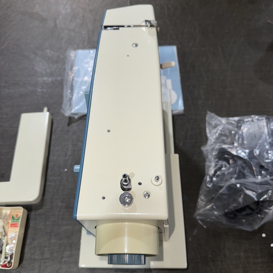 Vintage Open Box Singer Merritt 3013 Sewing Machine, Blue, case and manual