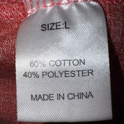 This product is a men's red unisex tee shirt in adult size large, featuring a crew neck and short sleeves. Made from a cotton blend fabric, it is lightweight and tagless for added comfort. The tee shirt has a graphic print with a logo accent and is suitable for all seasons, particularly summer, fall, and spring. With a solid pattern and a regular fit, this tee shirt from Delta is perfect for casual wear and can be machine washed for easy care.