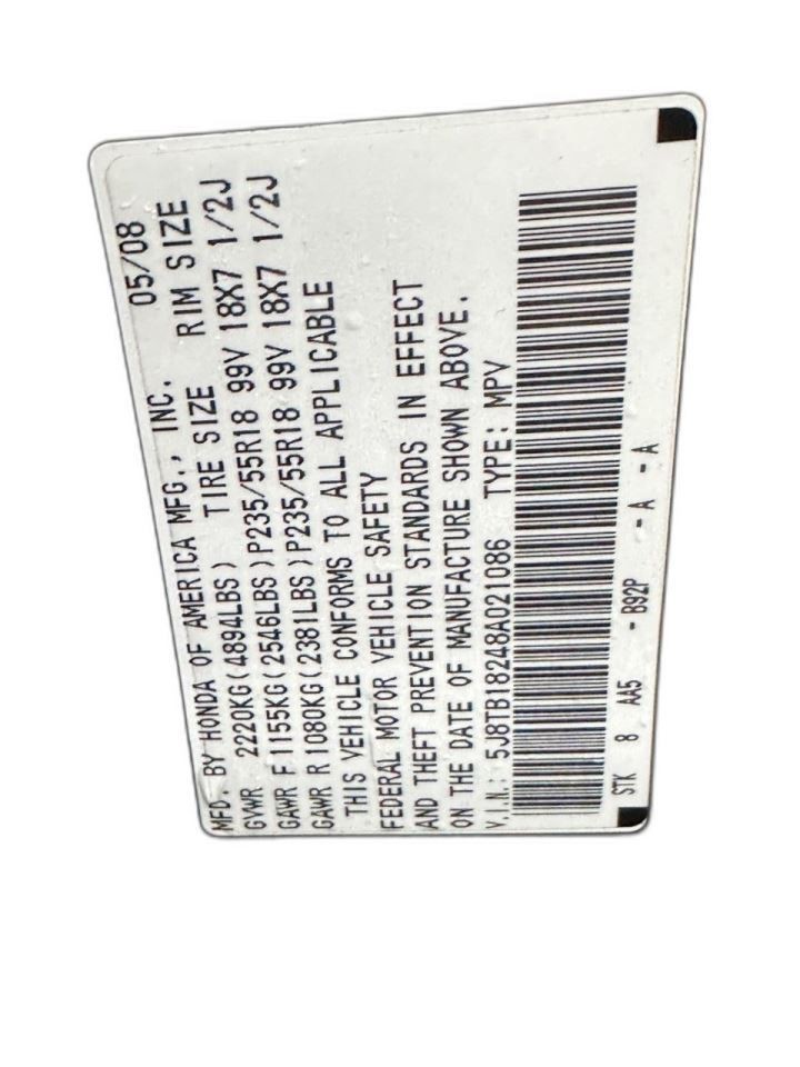 Passenger Right Tail Light Quarter Panel Mounted Fits 07-09 RDX 1343586