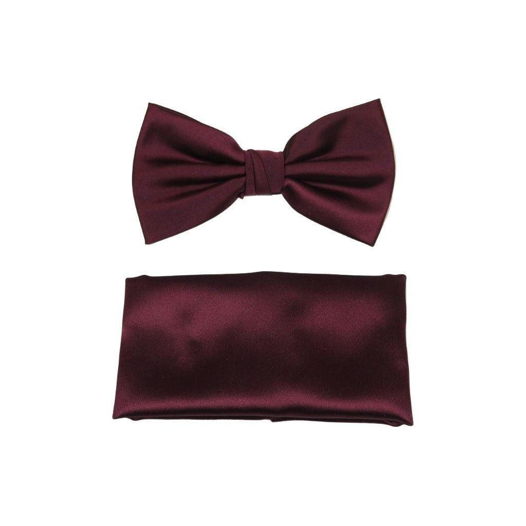 Men's Bow Tie and Hankie by J.Valintin Collection #92494 Solid Satin Burgundy