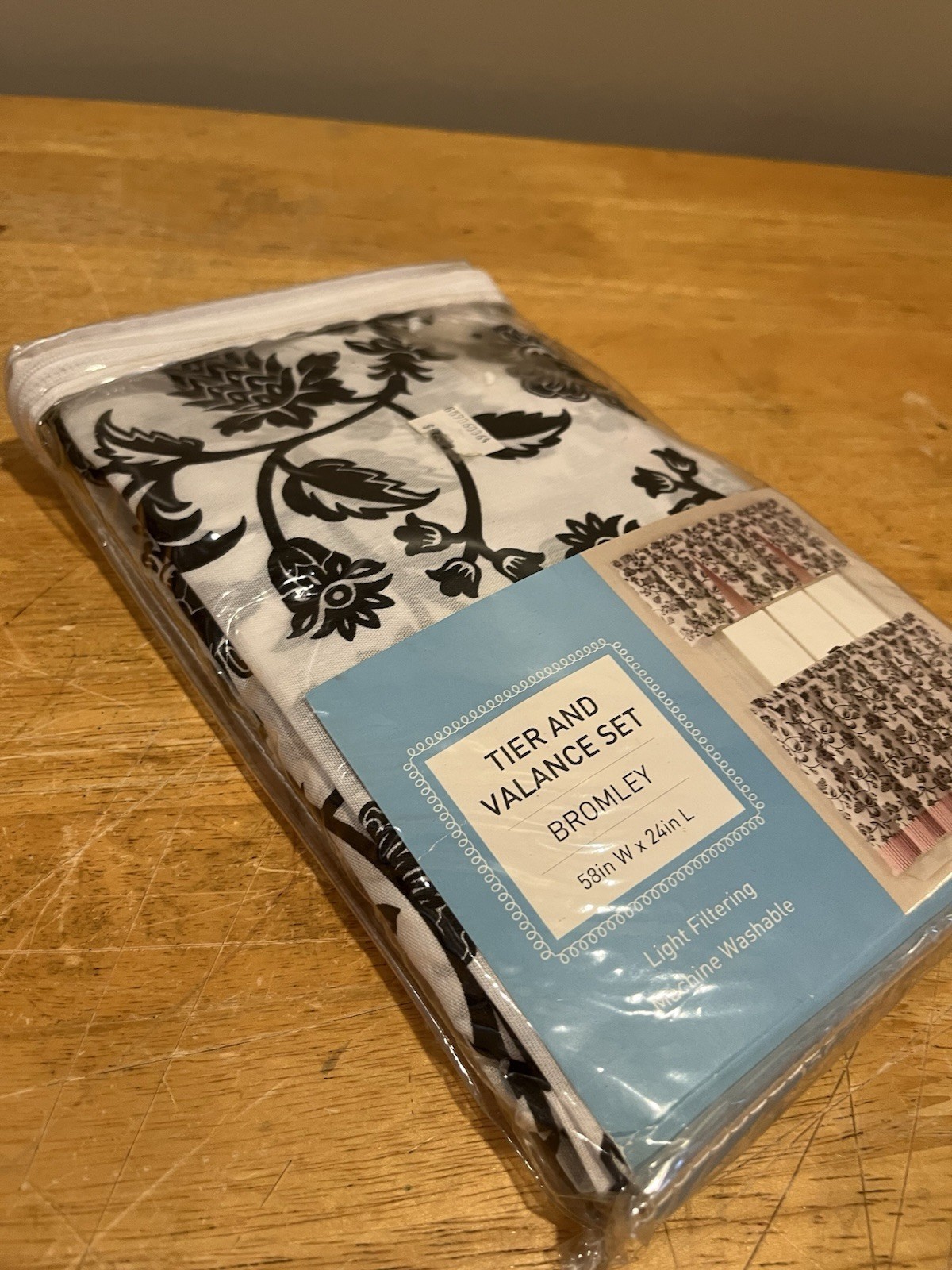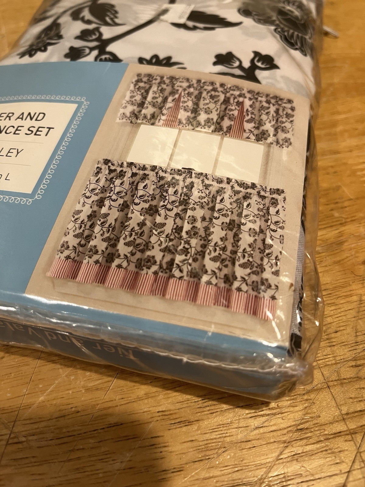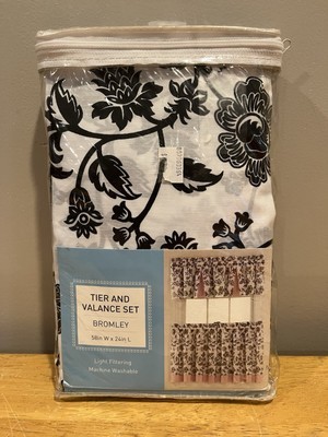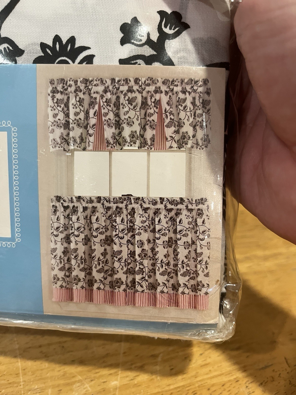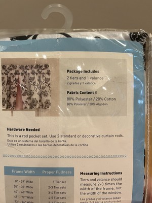 Arlee Home Fashions Black Floral Red Tier Valance Set Accents Bromley 58x24”