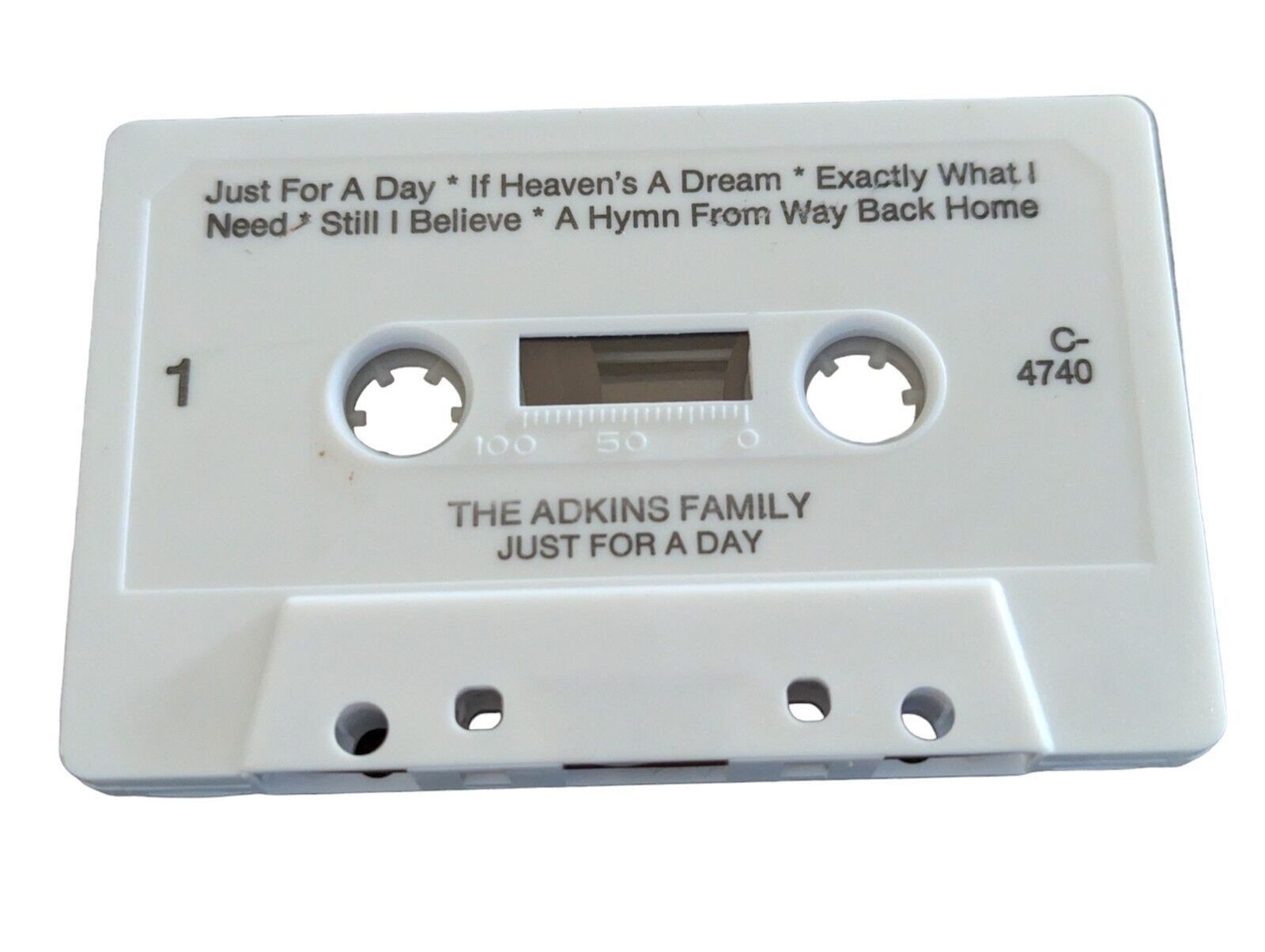 This cassette features the amazing music of The Adkins Family, with their powerful and uplifting album "Just For a Day". The cassette is in excellent shape, and comes in a standard jewel case with a beige color. The inlay and case conditions are both rated as excellent.