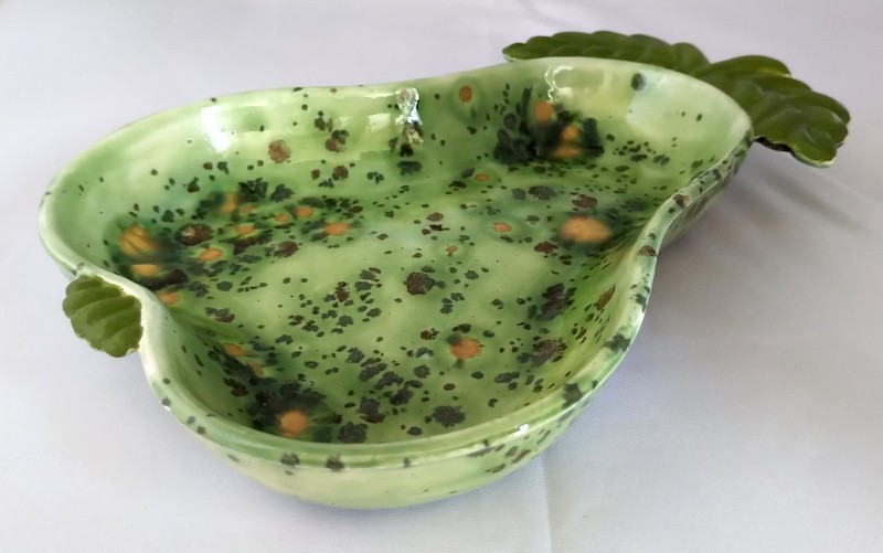 Handmade Green Glazed Ceramic PEAR Serving/Trinket Dish (signed AD '87)