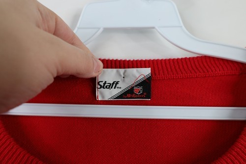 Vintage 90s Wilson Staff Mens XL Spell Out Tennis Knit Crewneck Sweater Red