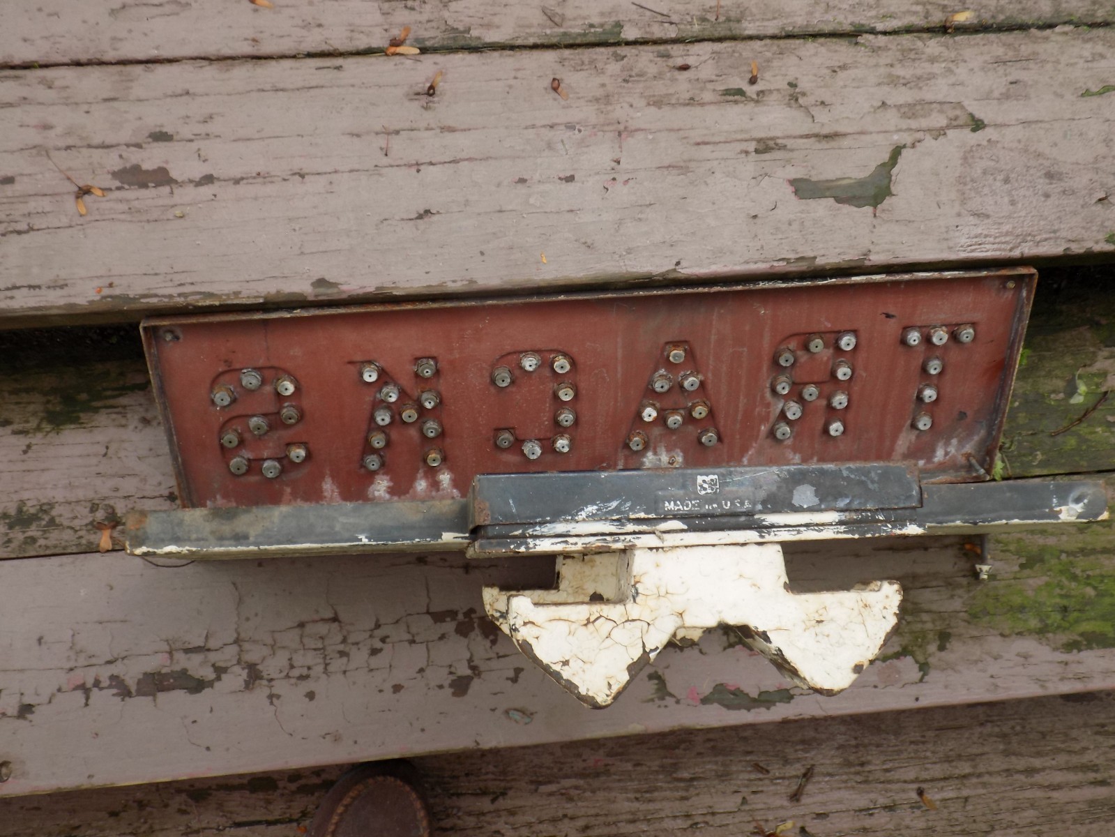 Sign with Cats Eyes Reflectors.. Sign measures approx.. 27 OE inches long x 16 inches