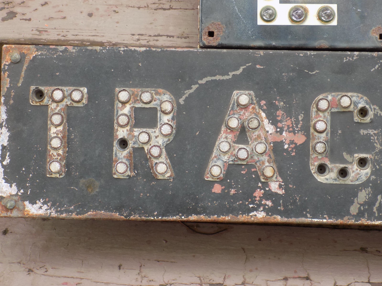 Vintage Railroad 2 Tracks Heavy Metal Sign with Cats Eyes Reflectors