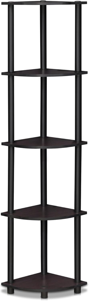 Turn-N-Tube 5 Tier Corner Display Rack Multipurpose Shelving Unit, 1-Pack, Dark