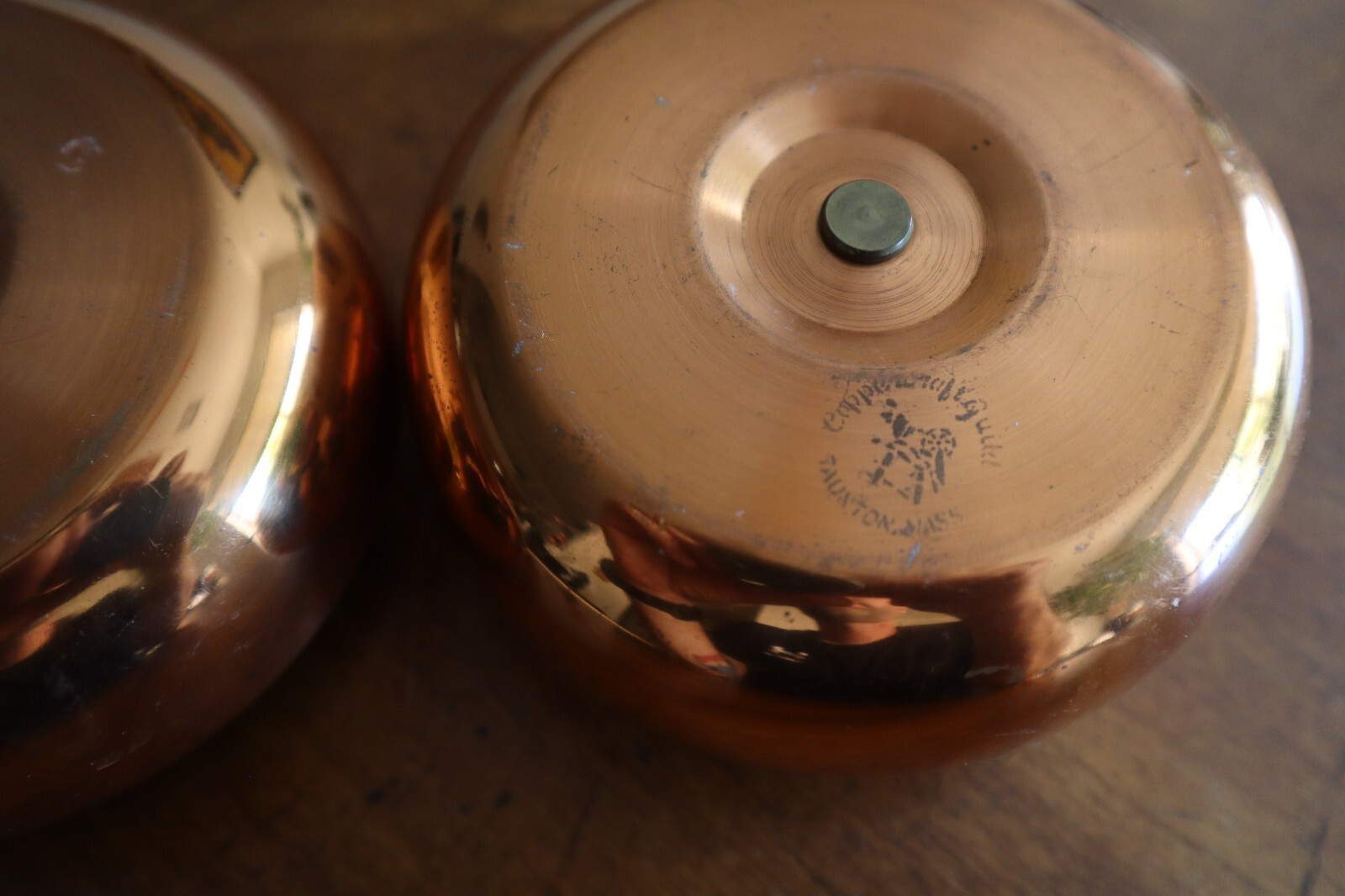 Pair Vintage MCM COPPER Candle Stick Holder by Coppercraft Guild Taunton Mass