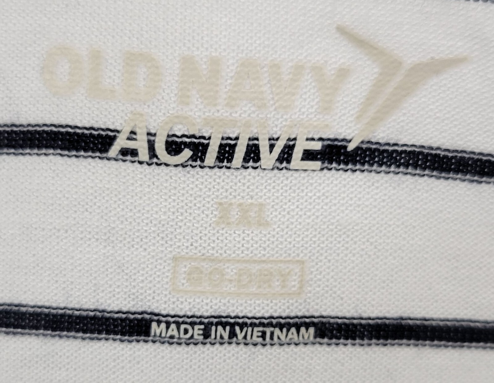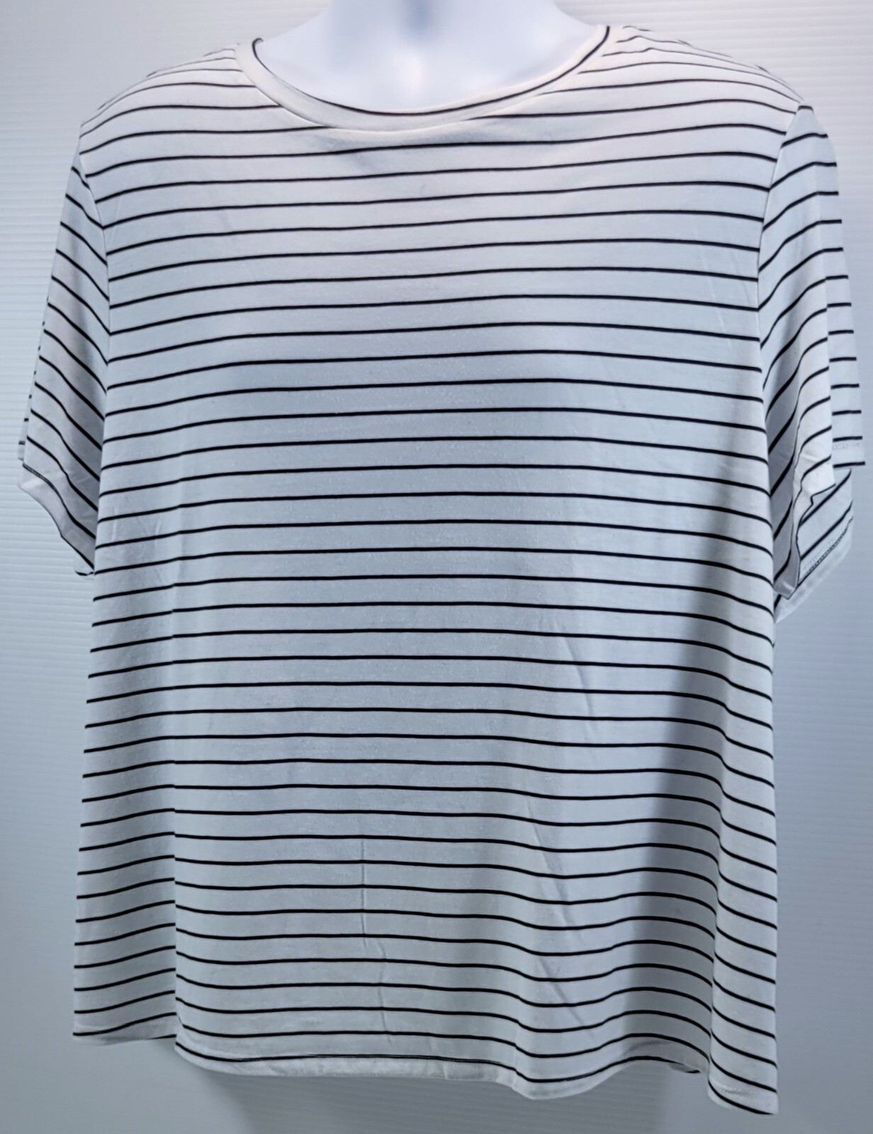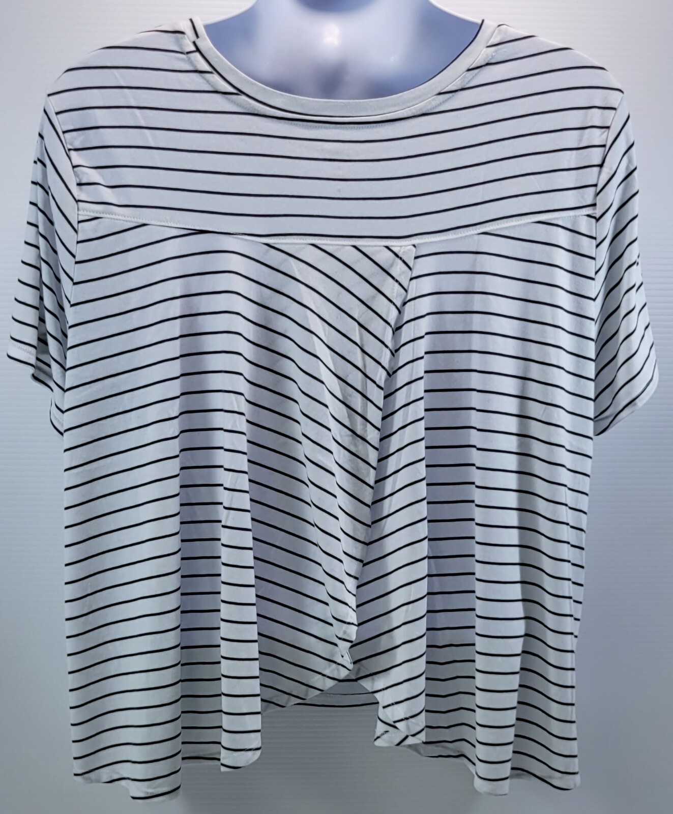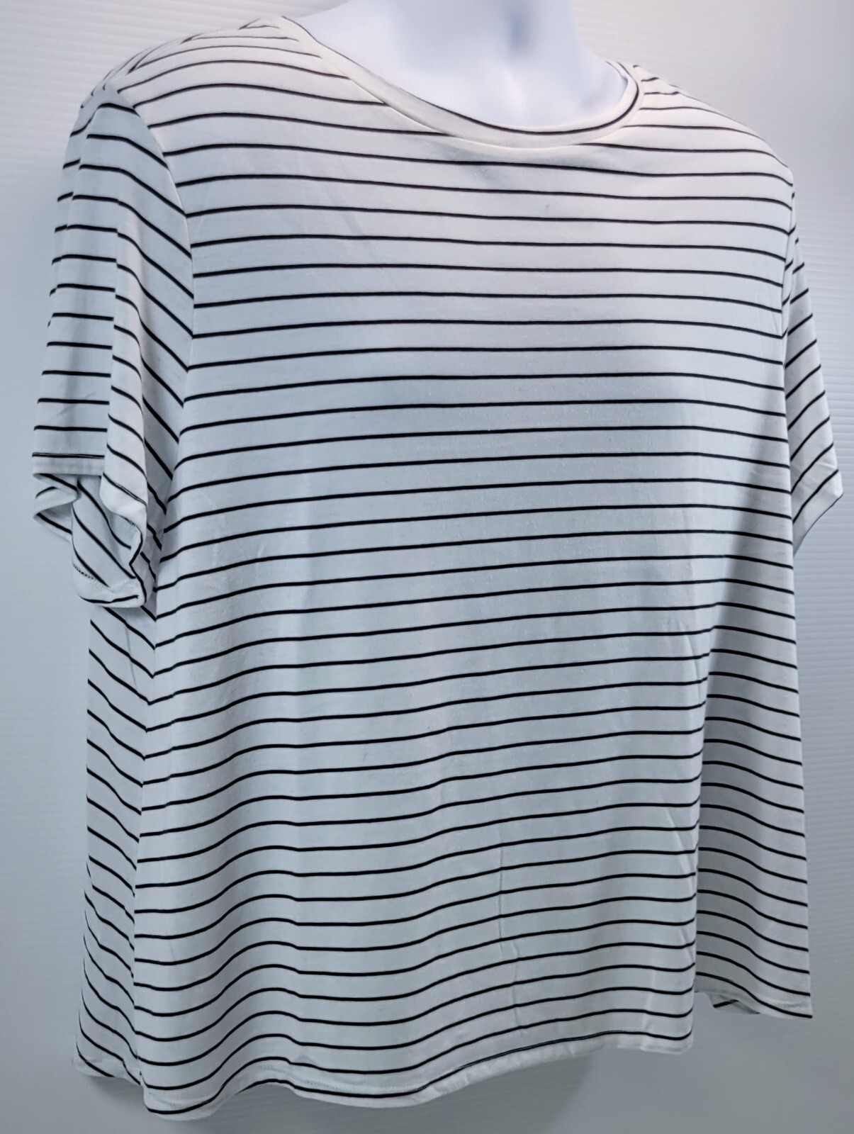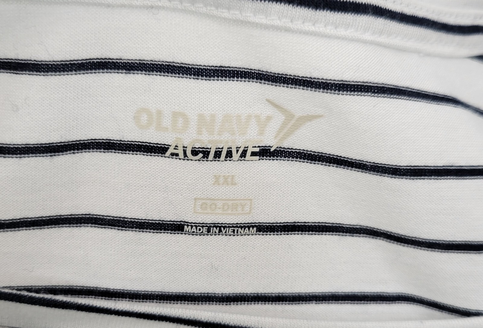 MT) Old Navy Active Woman Short Sleeve Shirt White Navy Blue Striped XXL