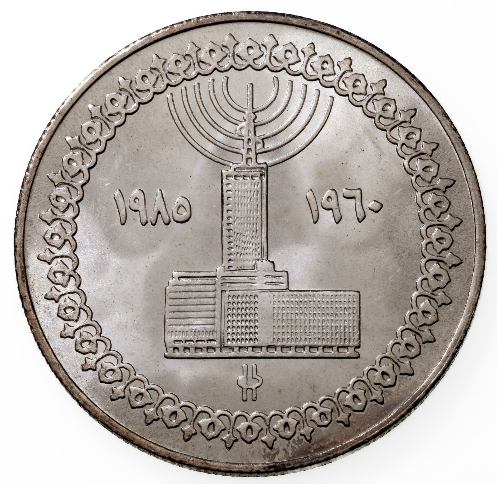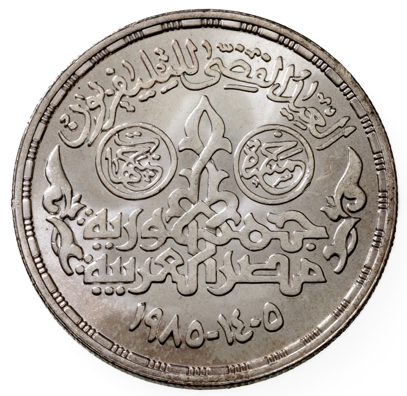 1405-1985 Égypte 5 Pounds Pièce de Monnaie En Bu, 25th Anni. Égyptien Télévision