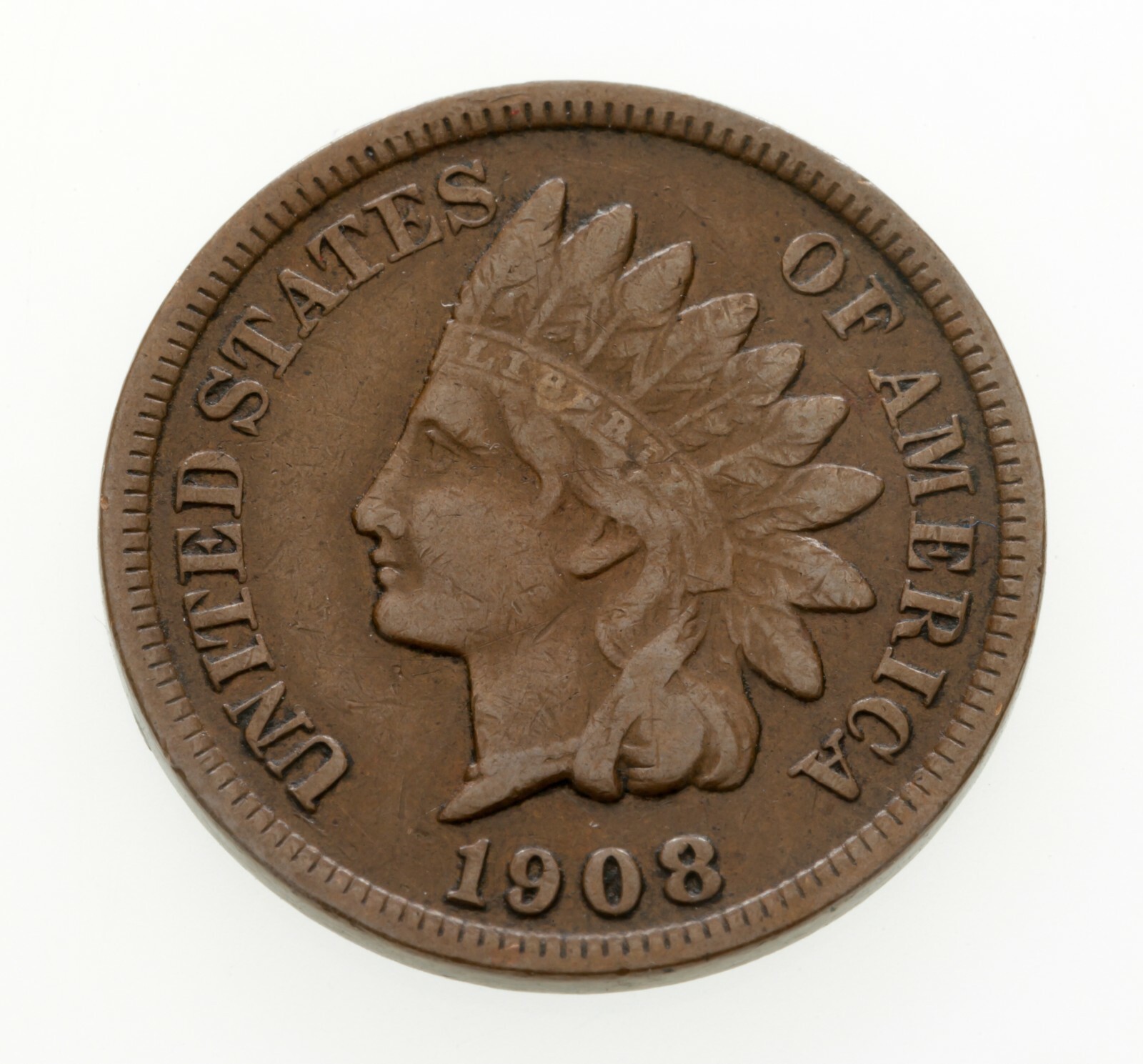 1908-S 1C INDIAN CENT EN CONDITION VF, All Brown Color, Full Liberty