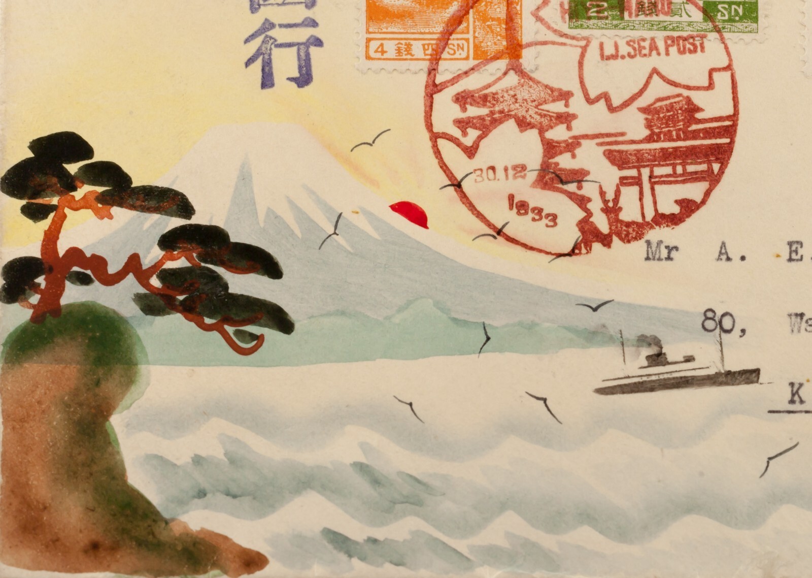 Karl Lewis 1933 Peint à la Main Aquarelle Housse Japon To Ontario, Can Hiye Maru