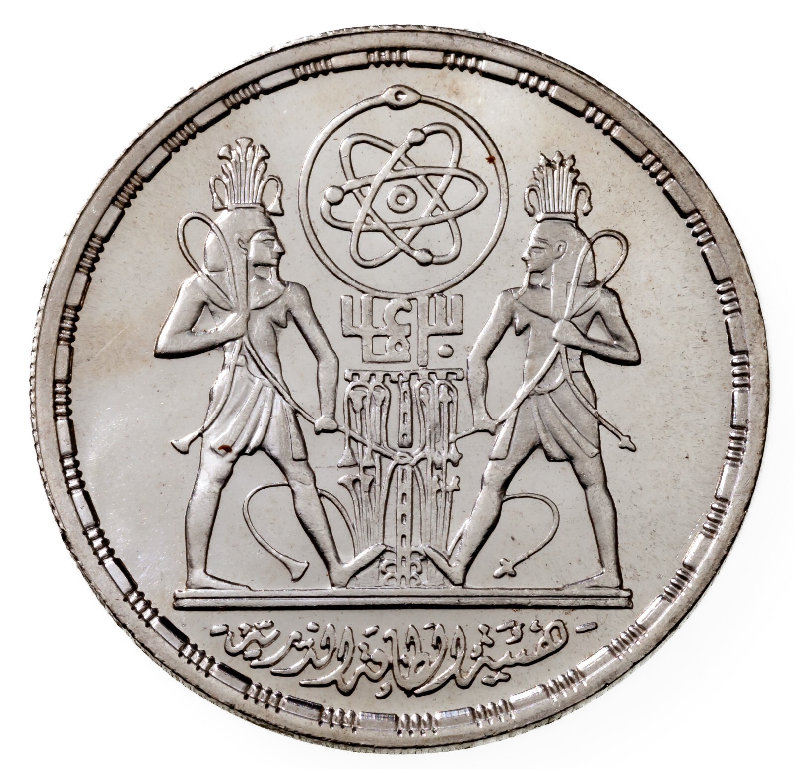 1406-1986 Égypte 5 Pounds Pièce Argent En Bu, 30th Anni. Atomique Énergie Bio Km