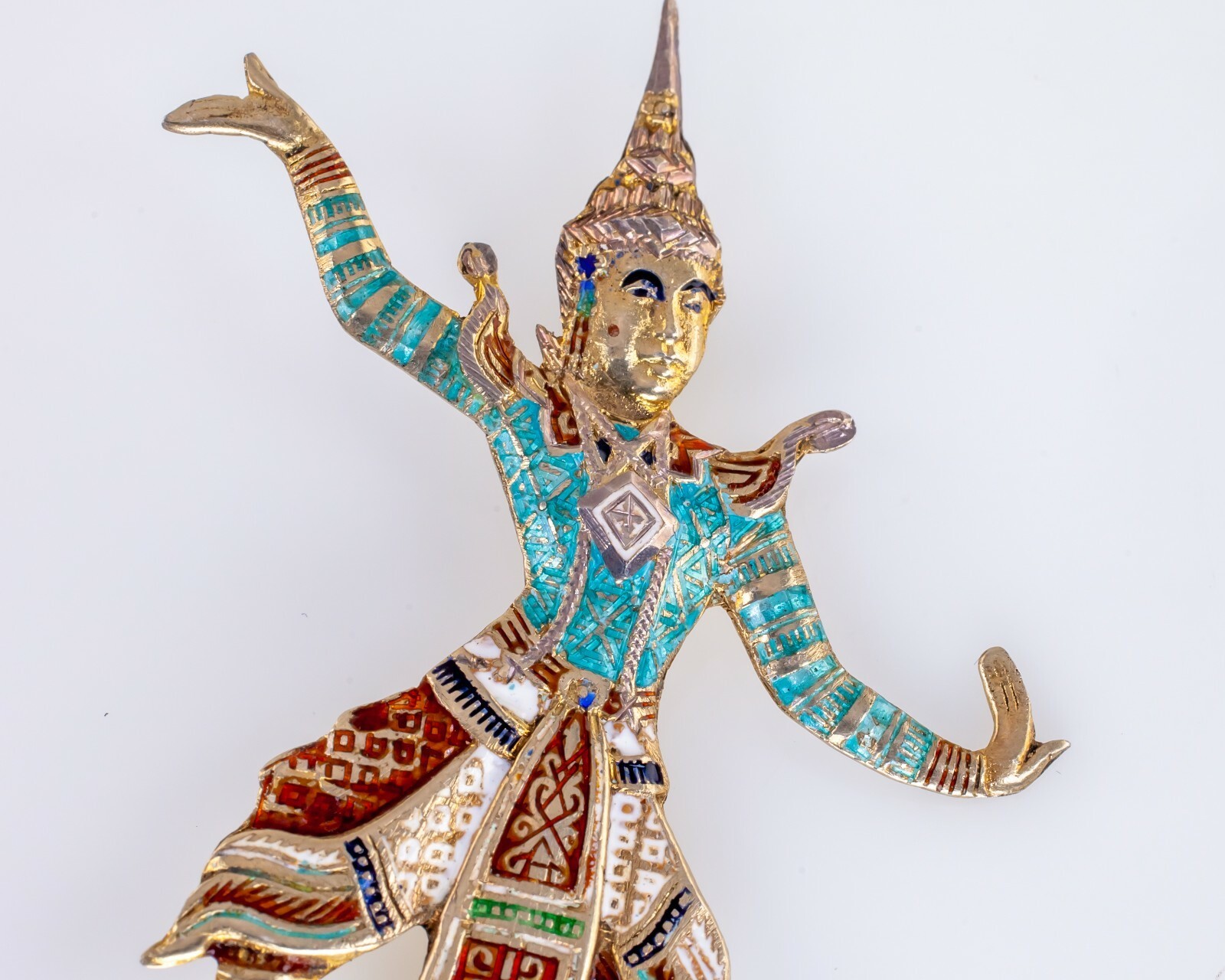 Magnifique Argent Sterling Grand Émail Siam Danseuse Broche