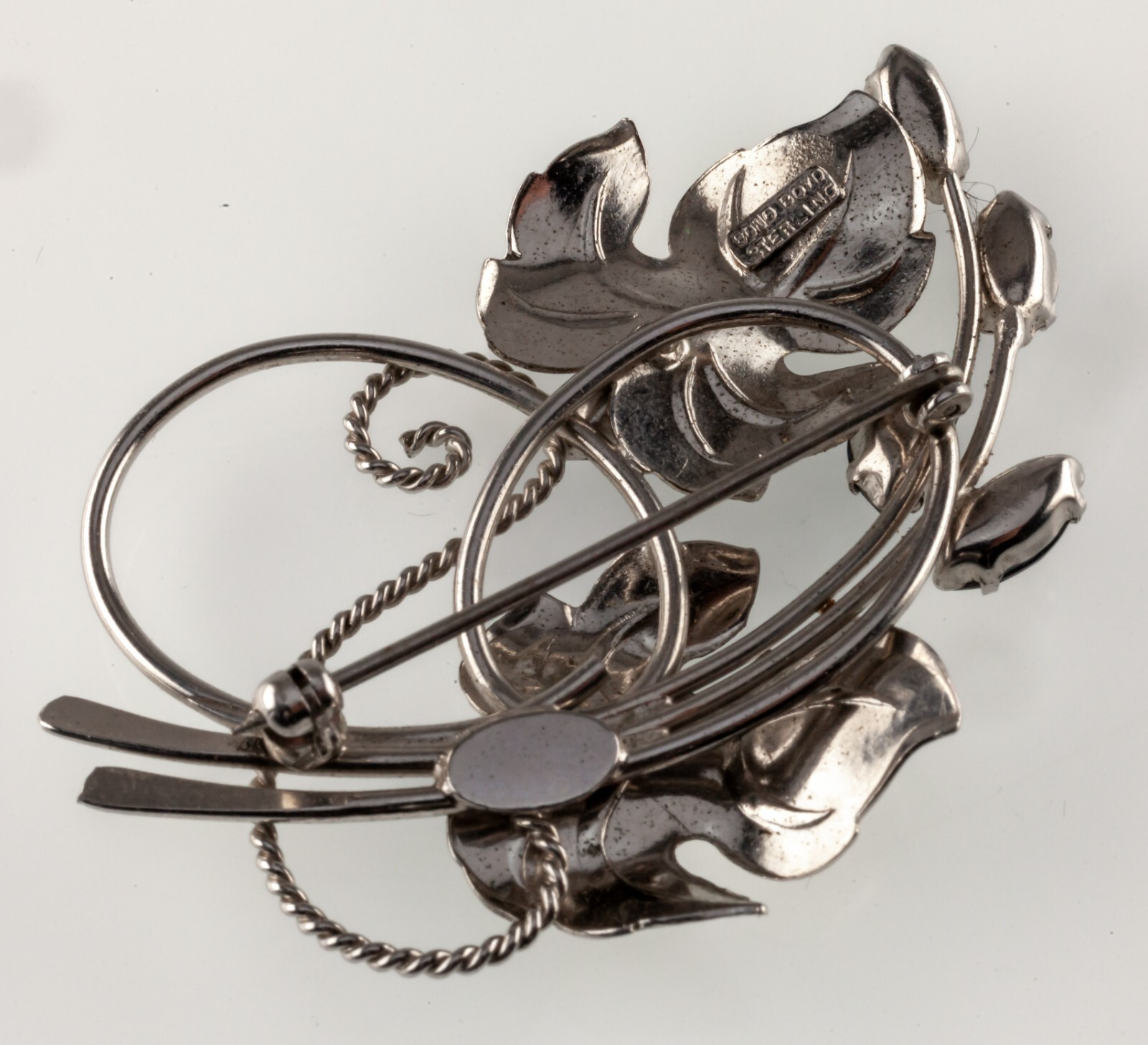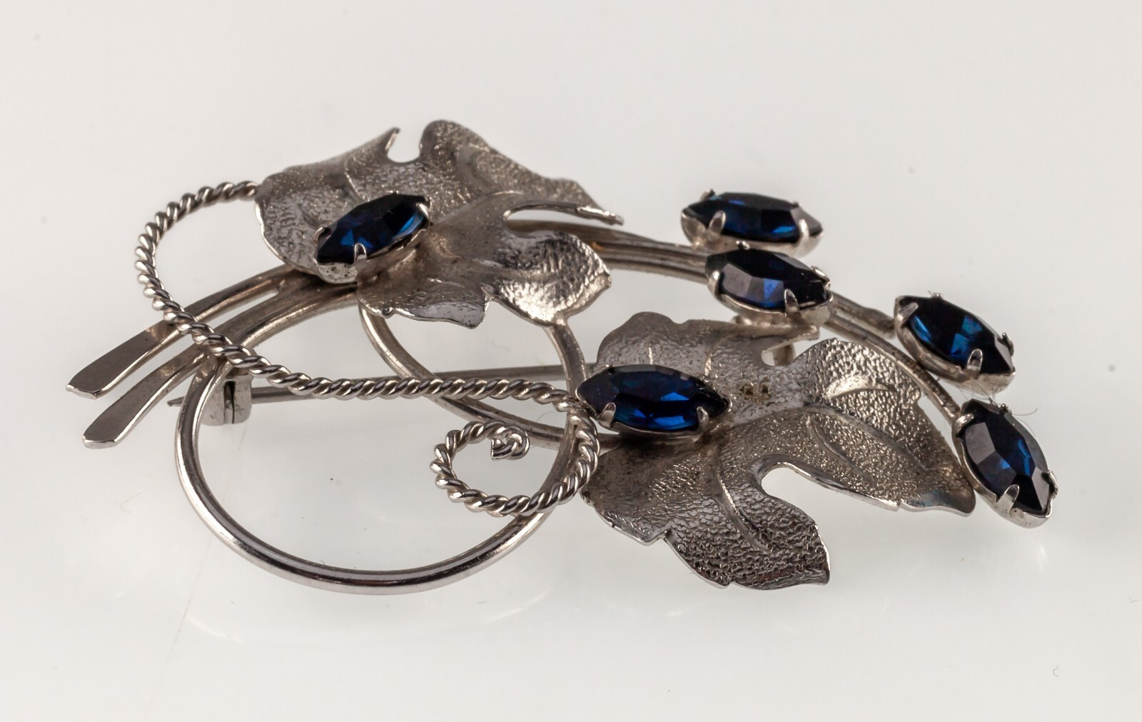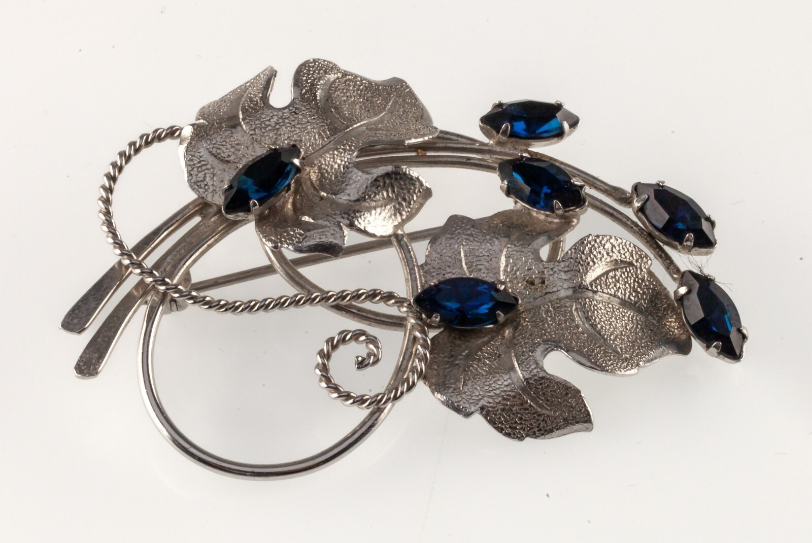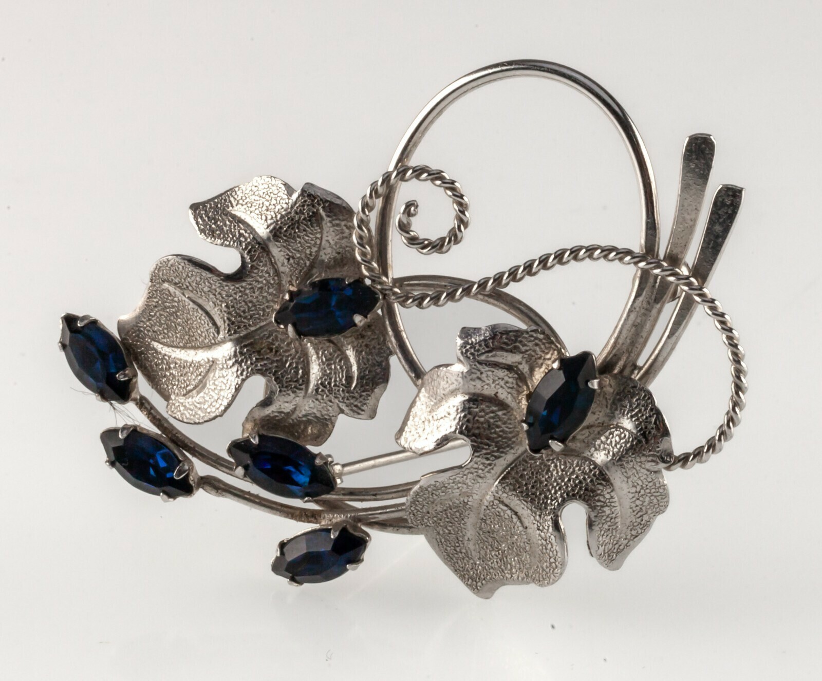 Vintage Bond Boyd Silver Silver Blue Crystal Floral Brooch