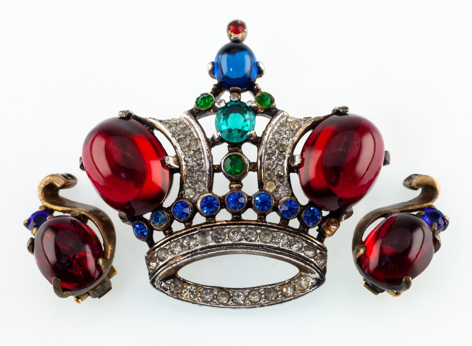 Trifari Argent Sterling Alfred Philippe Couronne Broche Et Boucles Magnifique