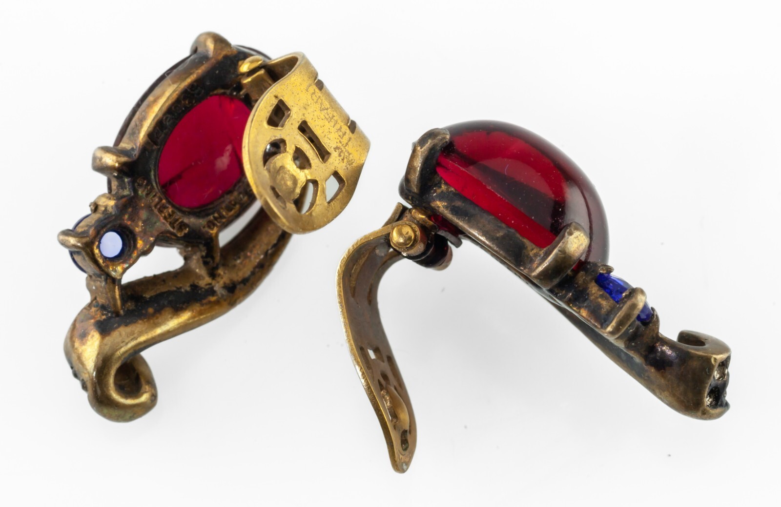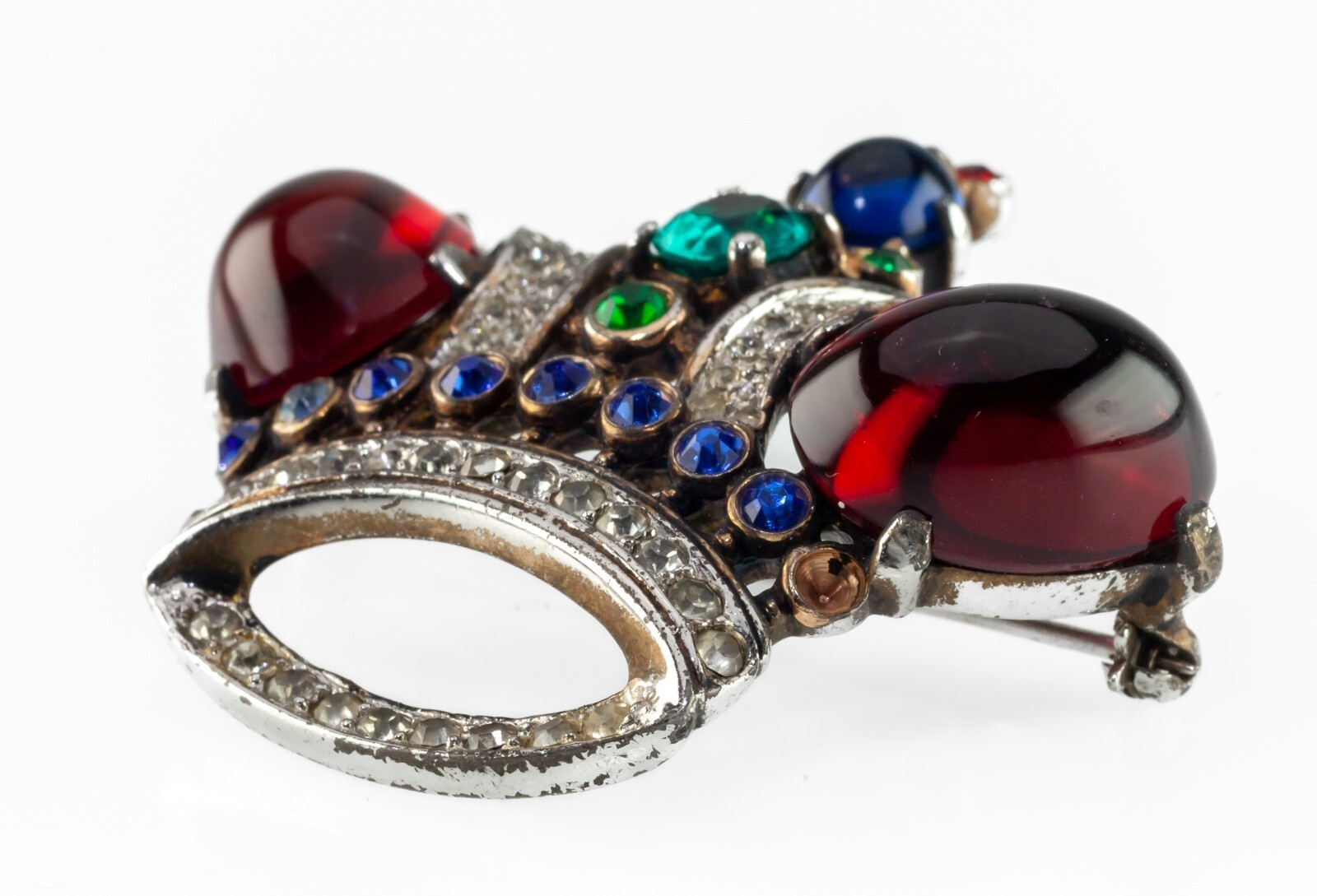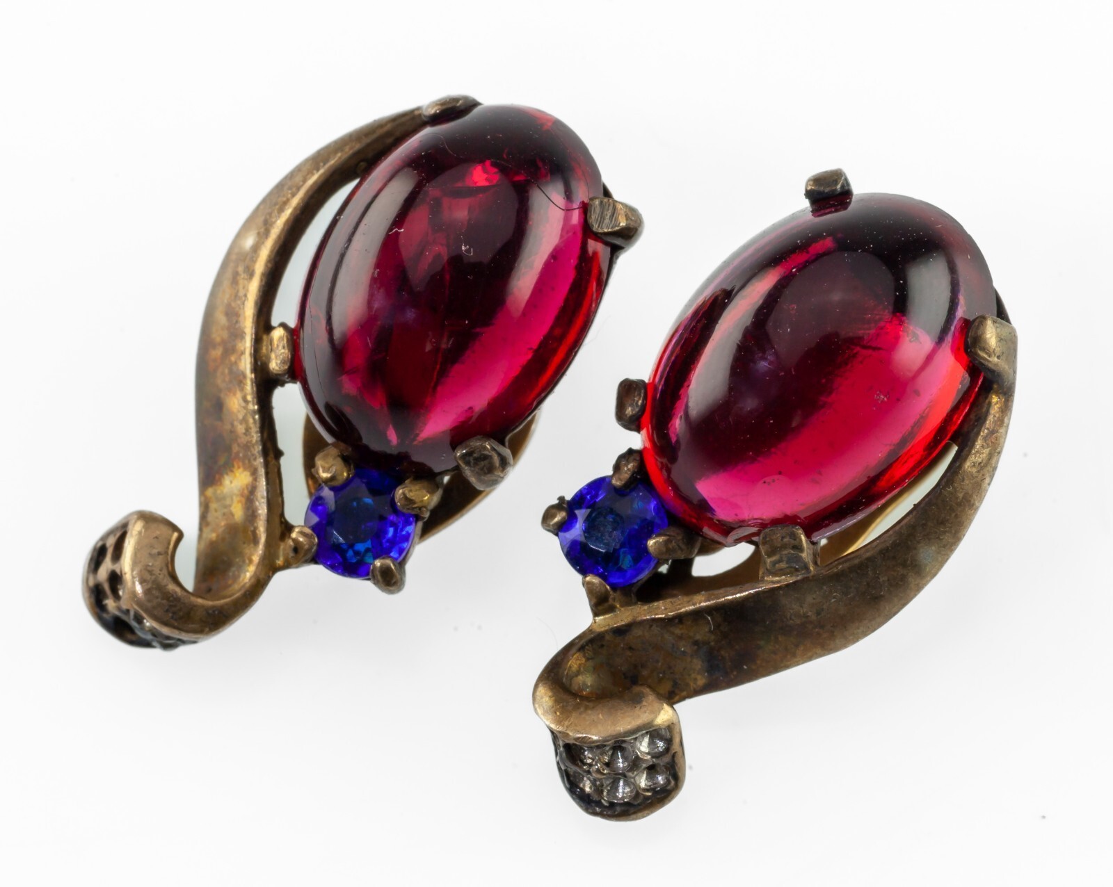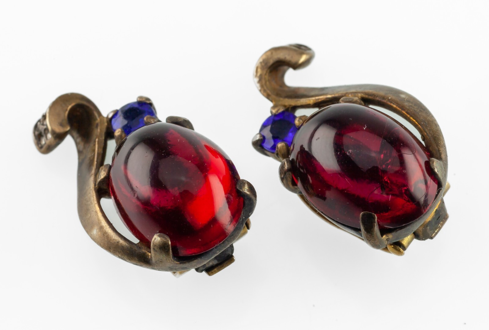 Les pieces sont en bon etat vintage. Un peu de ternissement sur le metal. Quelques pierres manquantes sur les boucles d'oreilles et la broche. Voir les photos pour plus de details.