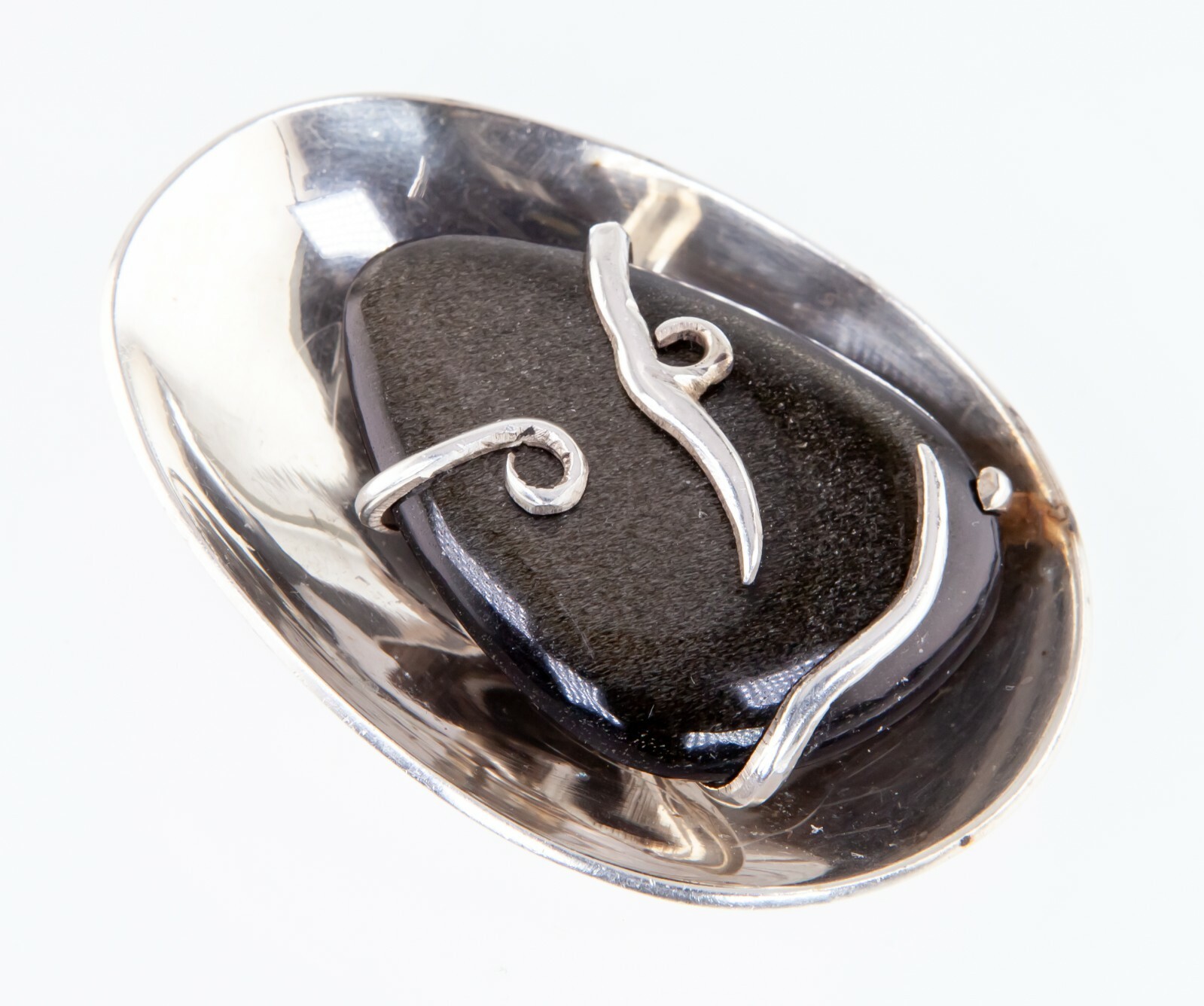 Superbe pendentif et boucles d'oreilles placees en argent sterling avec des pierres d'obsidienne par AE