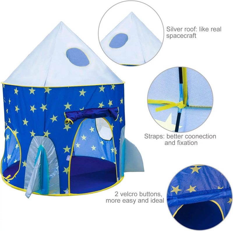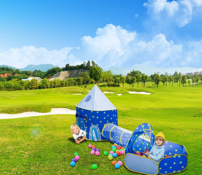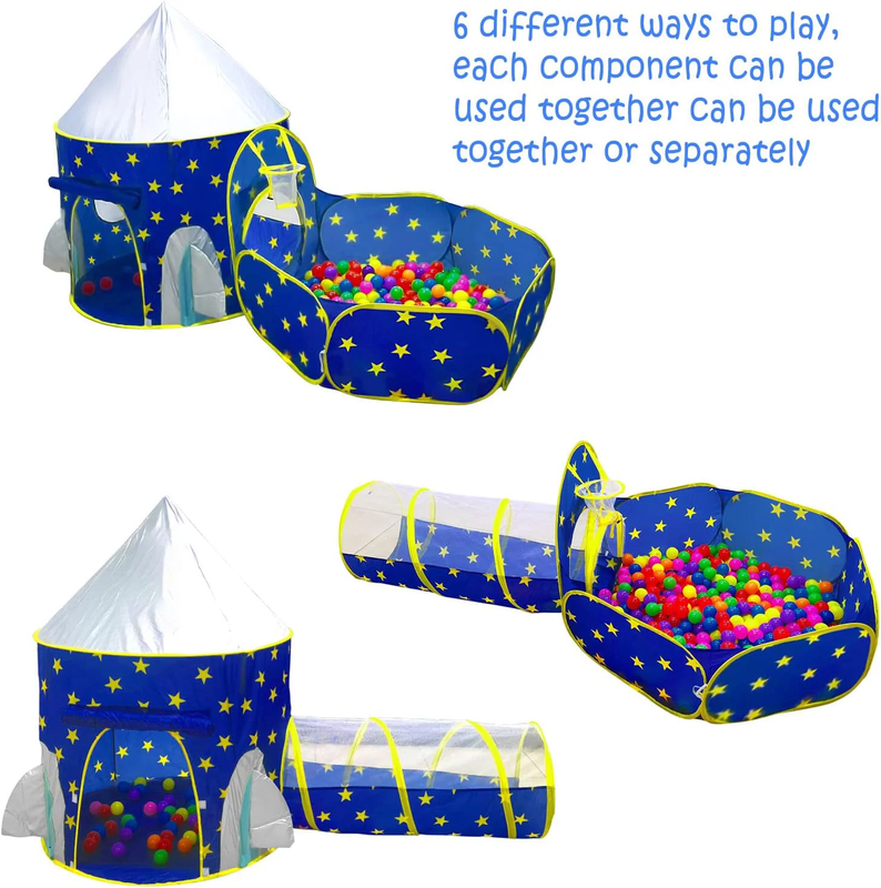 Unlimited Fun for Children - The 3 in 1 connection design between the toddler playhouse, toddler tunnel and ball pit brings more fun to children. Hiding, crawling, jumping and retreating in the kid play tent. This 3 in 1 rocket game tent has been given the theme of a space station. The tent acts as a rocket ship, transporting you through the tunnel to the game and entertainment place!