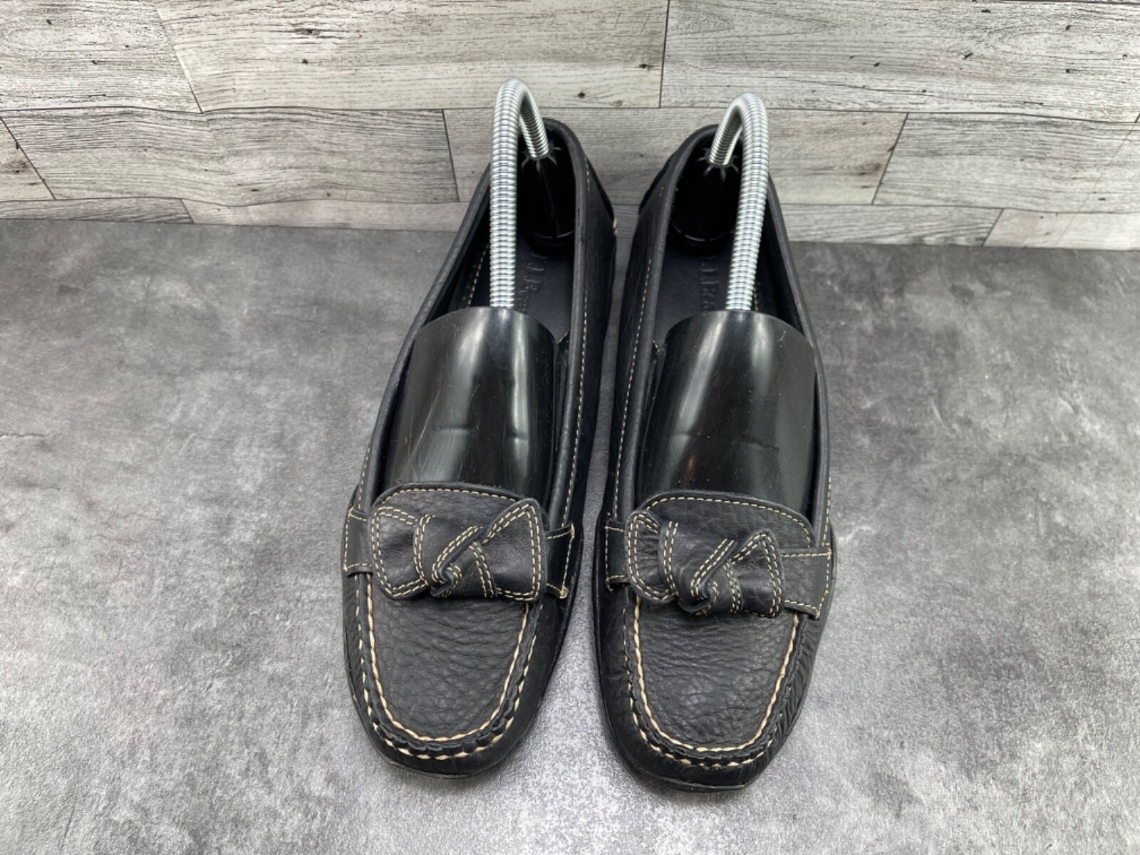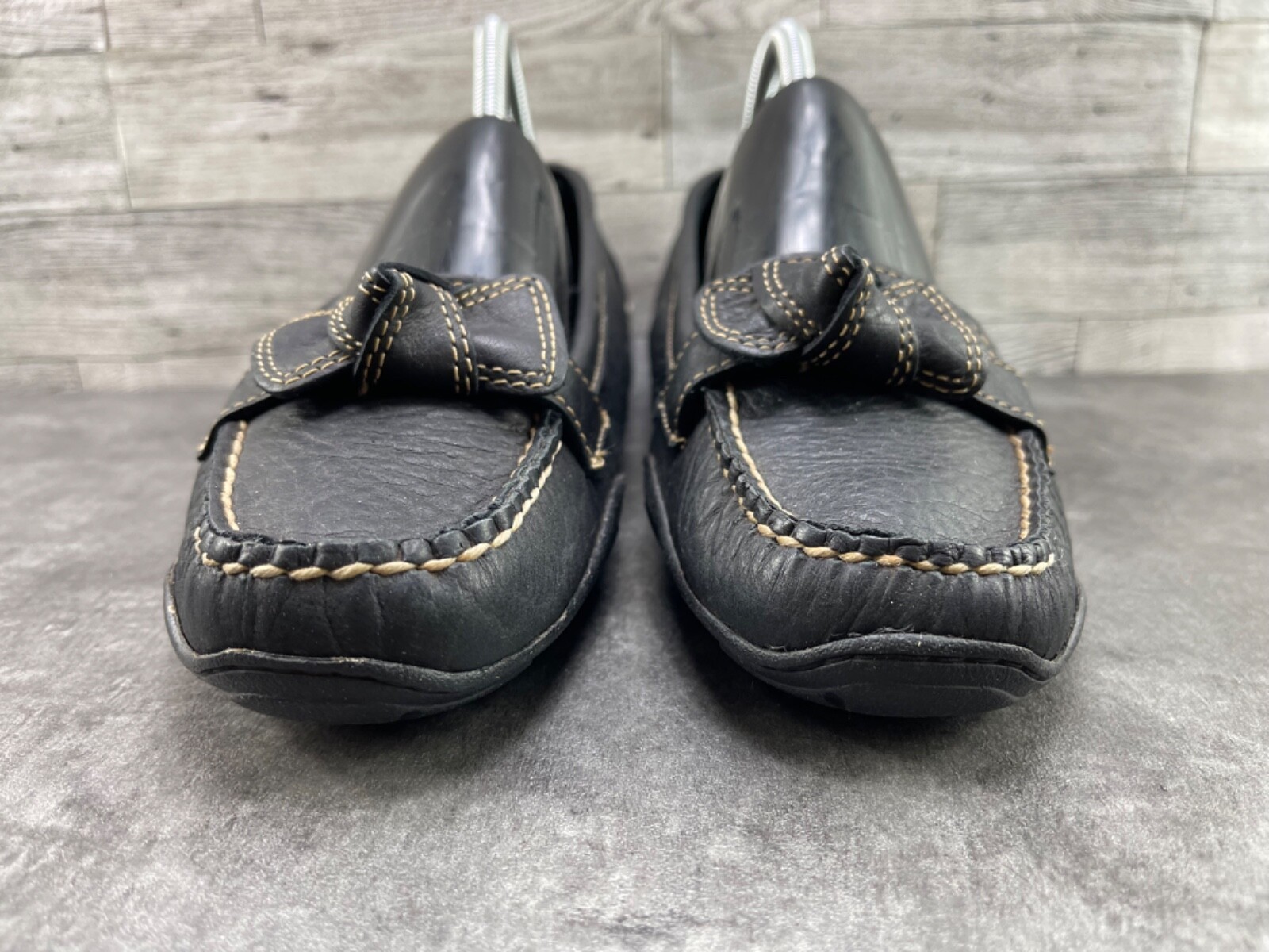 L. L. Bean Driving Loafers Women 8M Shoes Black Leather Slip On Comfort Bow Flat