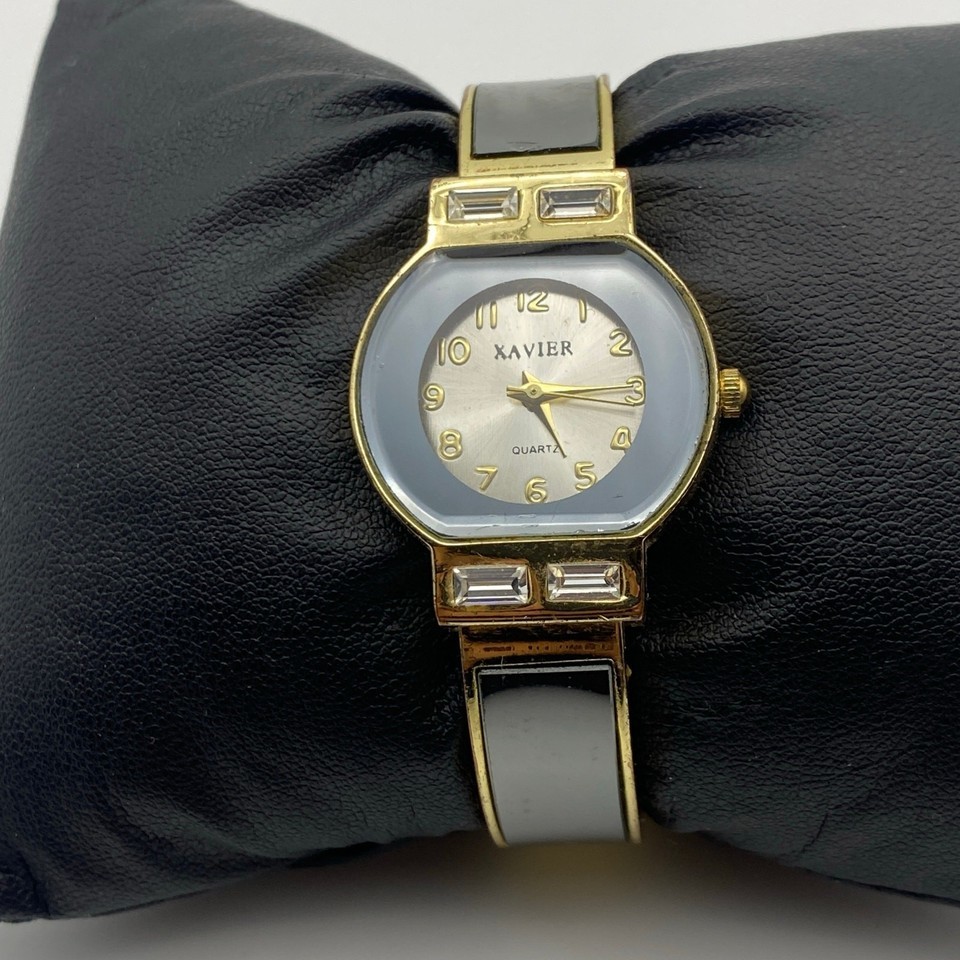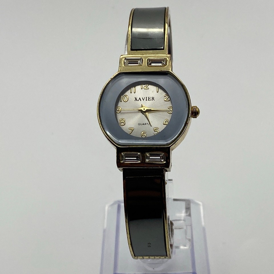 This is an elegant Xavier double class stainless steel watch with gold and black tone accents.